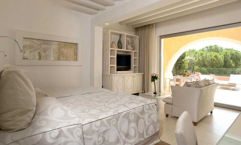 Forte Village Resort - Il Castello – елегантний готель, виконаний у середземноморському стилі, розташований між сосновим гаєм та затишним пляжем курорту. Ексклюзивні апартаменти, що знаходяться на 4 та 5 поверхах дозволяють насолоджуватися панорамним видом моря, з усіх вікон, балконів та терас відкривається мальовничий краєвид на морські простори та гори. Готель має власний басейн з підігрівом, чудовий ресторан Кавальєрі, потопаючий у густій зелені порадує гостей приємною атмосферою та фортепіанною музикою.
