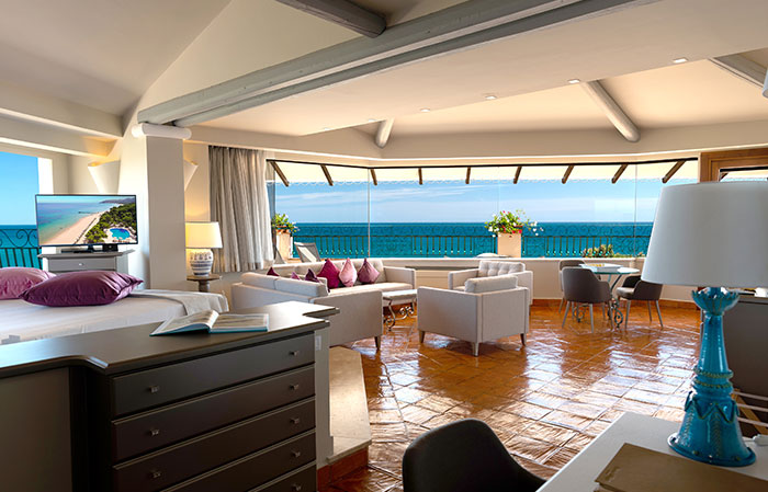36 кв.м + 33 кв.м тераса. Елегантні та розкішні номери з видом на море обладнані двома ліжками «queen-size». Спальна зона злегка піднята над вітальнею що веде на чудову терасу, з якої відкривається чудовий краєвид на море. У ванних кімнатах є ванна, у деяких номерах є гідромасажні ванни або душ із хромотерапією.