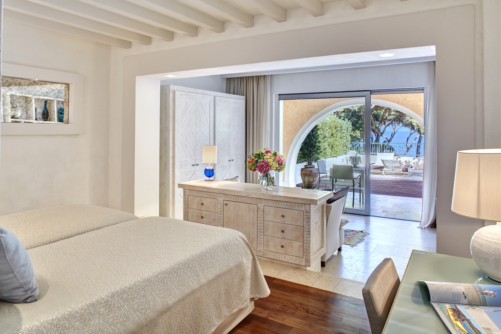 32 кв.м + 27 кв.м тераса. Комфортабельний номер з видом на море має спальню з двома ліжками розміру «queen-size» і чудовою терасою з боку моря. Усі номери мають ванну кімнату з ванною і душовою кабіною. У деяких номерах є гідромасажна ванна з хромотерапією.