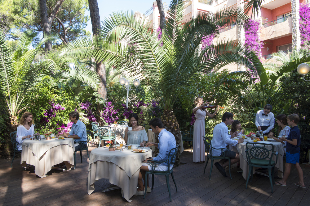 - Belvedere – гастрономічний ресторан італійської та сардинської кухні. A la carte. Вид на сади.