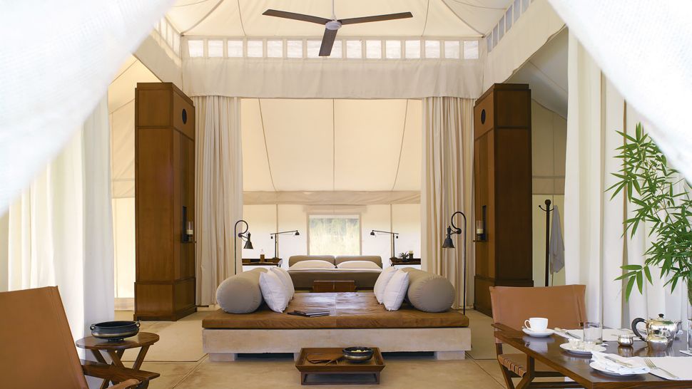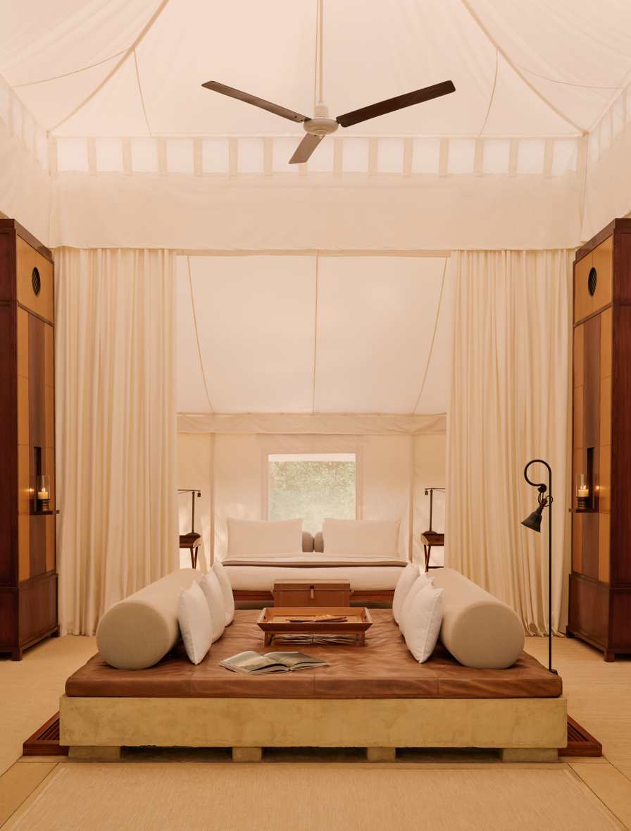 Кожен намет наповнений світлом і пропонує просторий простір площею 108 квадратних метрів (1162 квадратних фути), з високою спальнею, вітальнею з кушеткою, обідньою зоною та ванною кімнатою з окремо стоячою ванною та душем. Елегантно мебльовані намети розташовані для забезпечення максимальної приватності, кожен з яких має власну сонячну терасу, ідеальну для спостереження за птахами, що пролітають повз.