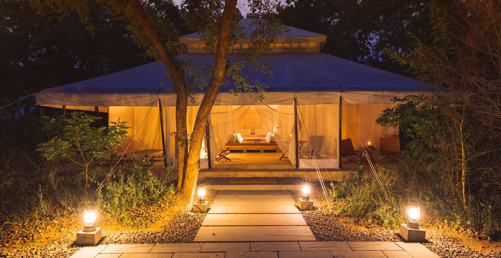 Табір складається з 10 розкішних наметів площею 108м² кожен. Усередині - спальня з ліжком king-size (або twin), зона відпочинку з daybed, обідня зона, ванна з душем і ванною, що окремо стоїть, дві раковини, гардеробна і простора власна тераса. Всі намети оснащені кондиціонером, вентиляторами, опаленням, Wi-Fi та персональним батманом (дворецьким), що забезпечує обслуговування 24/7.