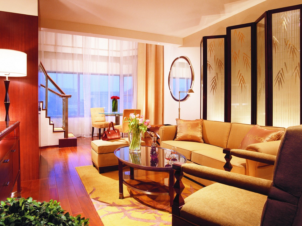 Пекін Люкс (100 кв. м) складається з махрової муфти зі смужкою муранського скла, спальні, м'якої вітальні з обідньою зоною 4 осіб і робочою зоною, санвузлом, окремою туалетною кімнатою. У номері є CD/DVD-плеєр.