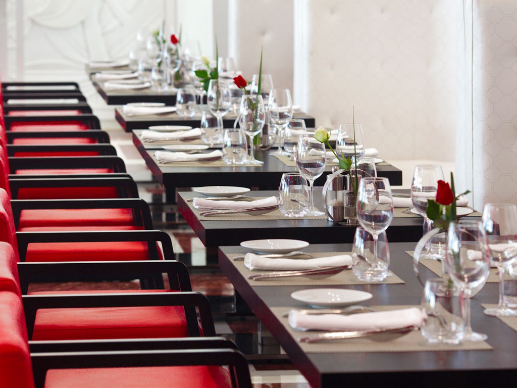 У ресторані готуються повечеряти. La Brassserie - Інтернет-галерея ексклюзивних предметів інтер'єруПропонуючи гостям різноманітні тематичні розважальні програми, легкі французькі кухні та меню для дітей.
