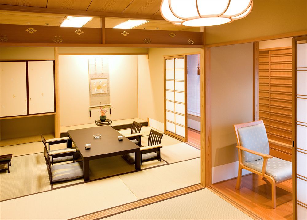 Полулюкс99 кв.м. Розташований на 25-му поверсі, в японському стилі, з солом'яними татутами на підлозі, шогджі перегородки, матові пригоди в спальні, складається з двох кімнат, лазні в японському стилі, смугастого кам'яним каменем, йде в центр Осакі.