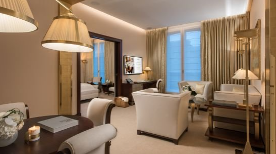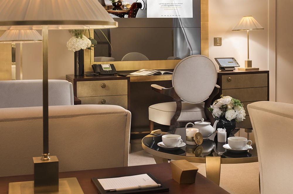 У бежевих і золотистих тонах, величних узголів’ях, мармурових ванних кімнатах і авангардних зручностях інтер’єр Жака Гарсіа прикрашає 101 номер і люкс готелю Fouquet’s Paris з розкішною теплотою. Насолоджуйтеся чистою елегантністю на престижній авеню Георга V і знаменитих Єлисейських полях. З 2019 року було відкрито 19 нових номерів і фірмових люксів з видом на Єлисейські поля.