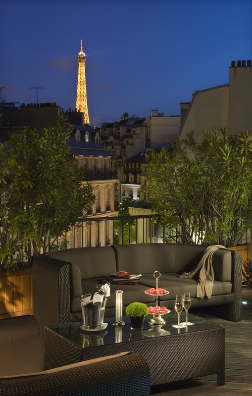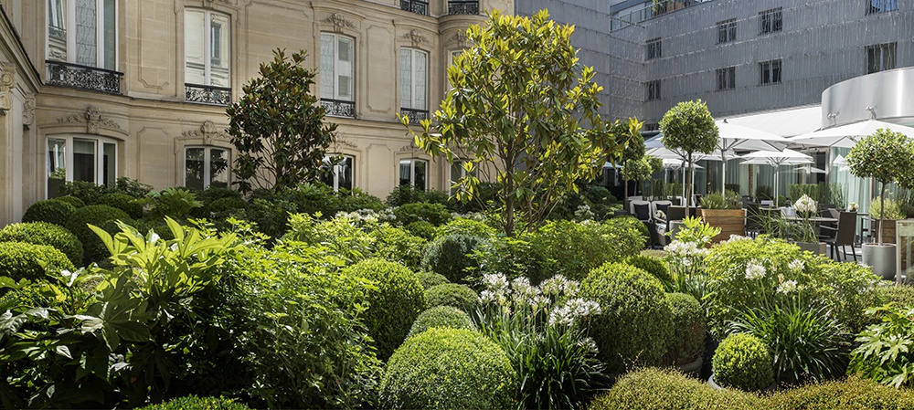 Готель розташований на розі Avenue George V і Elysees Avenue, які входять до знаменитого «золотого трикутника» і оточені найпрестижнішими Будинками моди. У 30-40 хвилинах від готелю розташовані міжнародні аеропорти Шарль де Голля та Орлі, а в 10 хвилинах – головна визначна пам'ятка Парижа – Ейфелева вежа.