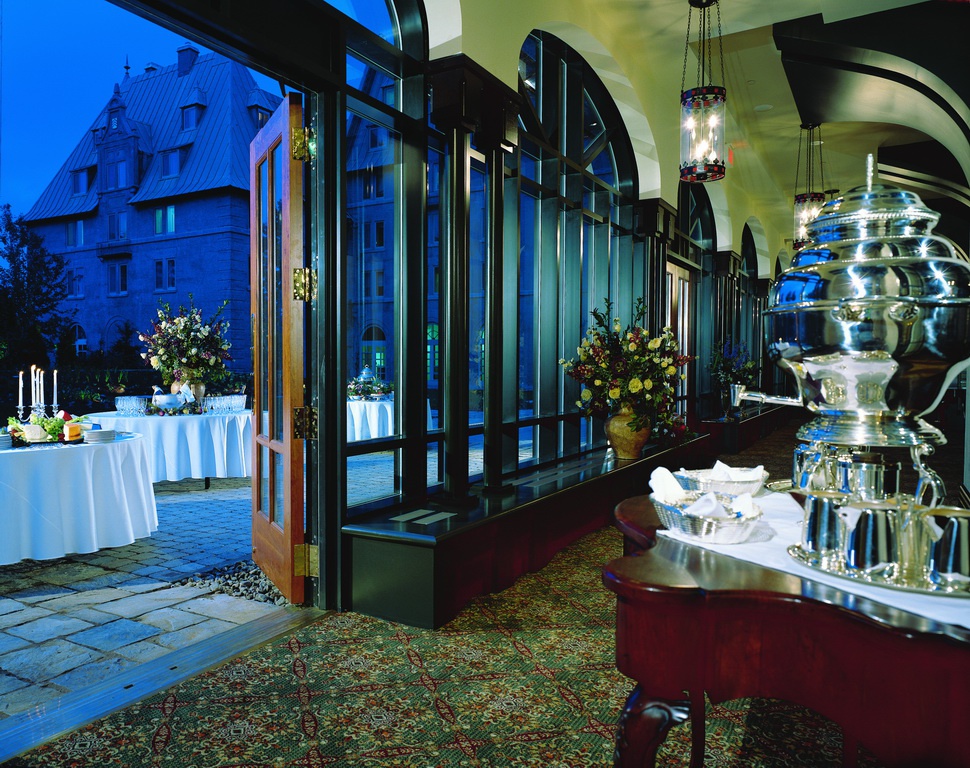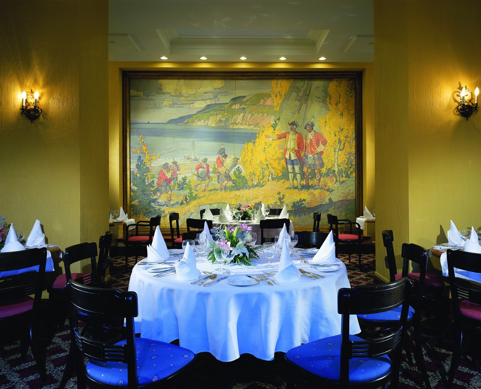 У вишуканому ресторані Le Charlevoix, який прикрашений антикварними роботами мистецтва, надає різноманітність місцевих кухонних страв, приготованих з вибраних продуктів, що супроводжуються багатою картою вишуканих віскі, що включає понад 500 імен. У ресторані Le St-Laurent з чудовим видом на річку пропонуються страви на грилі, гастрономічні фуршети, свіжі морепродукти і рибу, а також всі можливі десерти. Відкрита тераса Bistro Le Bellerive пропонує легкий шведський стіл, а також великий вибір канадського та імпортного пива. La Brise Лобі Бар - це приємне місце для відпочинку і зустрічей, і він звучить як жива музика вночі.