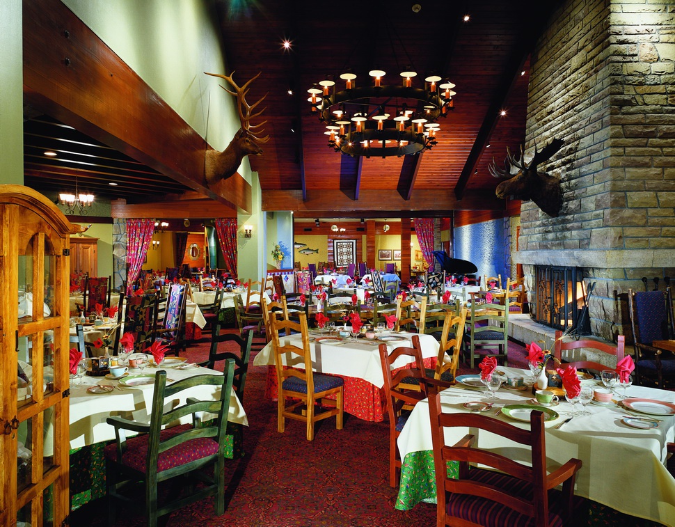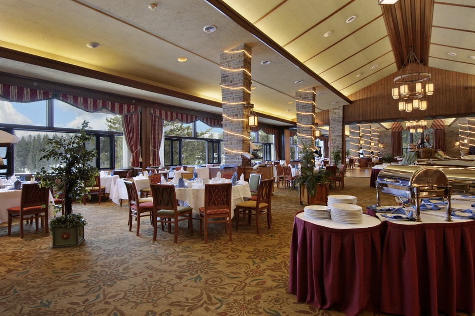 У вишуканому ресторані Edith Cavell представлені різноманітні вишукані страви місцевої кухні. У невиліковному середовищі, Emerald і The Emerald Outdoor Patio пропонуються легкі закуски і напої на будь-який смак. У луках можна запускати ніжні французькі, італійські та канадські кулі. Restaran Moose's Nook Північний Гри пропонує страви кухні Альберта, приготовані з місцевих продуктів. Перший кубок Deli і сезонний гриль є гольф-поле кафе, бар Palisade Lounge і Patio є прекрасним місцем для відпочинку і зустрічей, і Tent City Sports Lounge є затишним пабом, який пропонує великий вибір гарячих і холодних закусок, а також різноманітність пива, вина і всіх можливих коктейлів. Для гостей сучасні номери