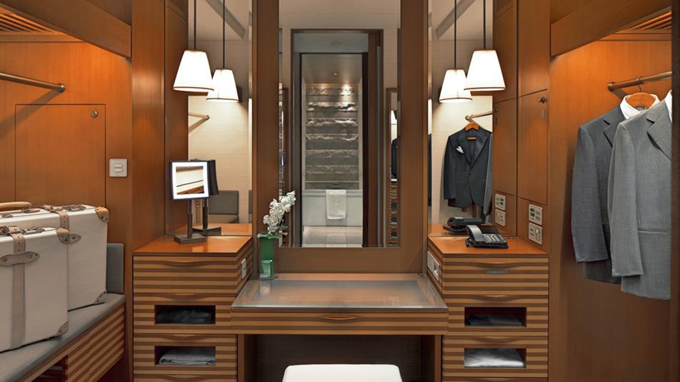Полулюкс (116 кв. м) складається з спальні, вітальні, зони для їжі, гавань, ванної кімнати, гостьової кімнати, імператорського саду та парку Хібія.