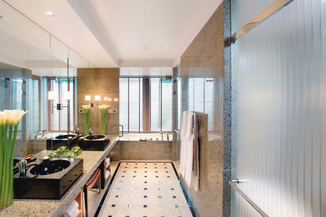 Мандарин Кутовий номер 50 кв.м. - знаходиться на 36 поверсі, складається з спальні з невеликою площею і двома скляними стінами, ванної кімнати з панорамним вікном, входом в місто.