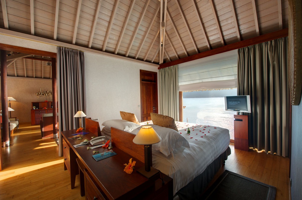 У 80 комфортабельних віллах різних категорій, включаючи 21 Emerald Overwater Villas, 24 Sapphire Overwater Villas і 35 Diamond Overwater Villas. У номерах елегантні інтер'єри поєднують сучасні дизайнерські та полінезні традиції: поли та натуральні дерева, комфортні меблі та оригінальні частини декору з місцевих матеріалів, з простою терасою, мають чудовий вигляд лагуна та оливкових садів. У готелі є інноваційна система кондиціонування на основі використання морської води.Emerald Overwater Villa, Велика Британія (100 квадратних метрів) - знаходиться на бочках, складається з спальні з harbor, simplic вітальня, ванна кімната, галькове серце з душовою кабіною і крапельою до води, має вид на пляж.