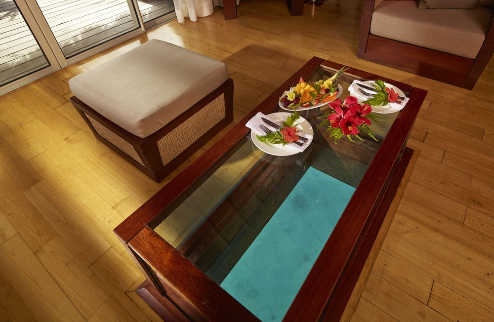 Сапфір Надводний Прованс (100 квадратних метрів) - знаходиться між Емеральдом і Алмазними віллами, має дивовижний вид на лагуну і острів Бора-Бора, складається з спальні з harbor, симпатична вітальня, ванна кімната, мебловане серце з душовою кабіною і водяною скибкою.