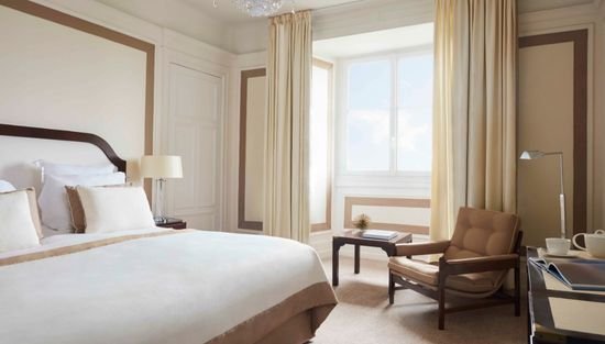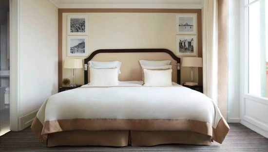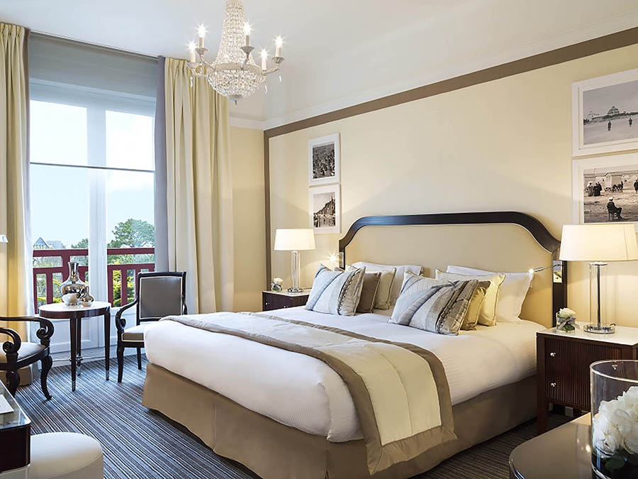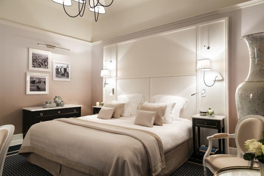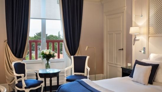 Номер Делюкс втілює сонячний приморський шик у стильних бежевих і блакитних тонах. На чорно-білих фотографіях курорт La Baule зображений у всій його старовинній красі. Велике блакитне море пронизує кожен дюйм цього простору площею 30 м².