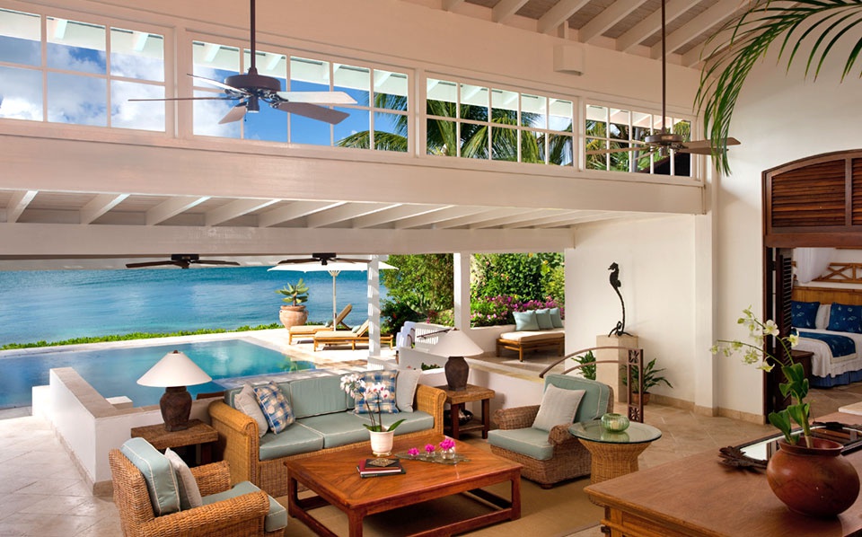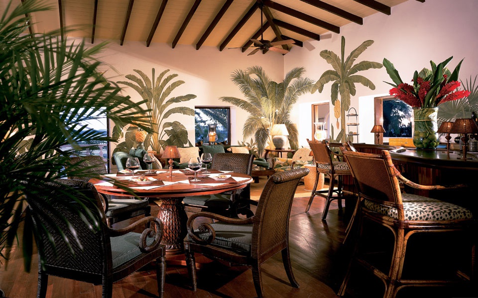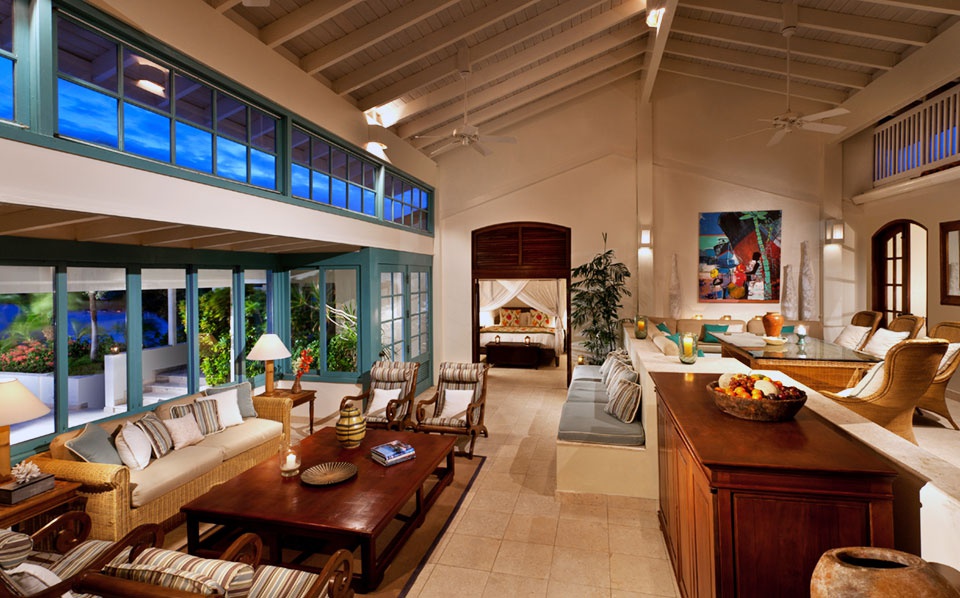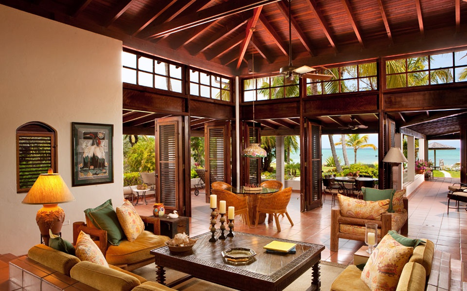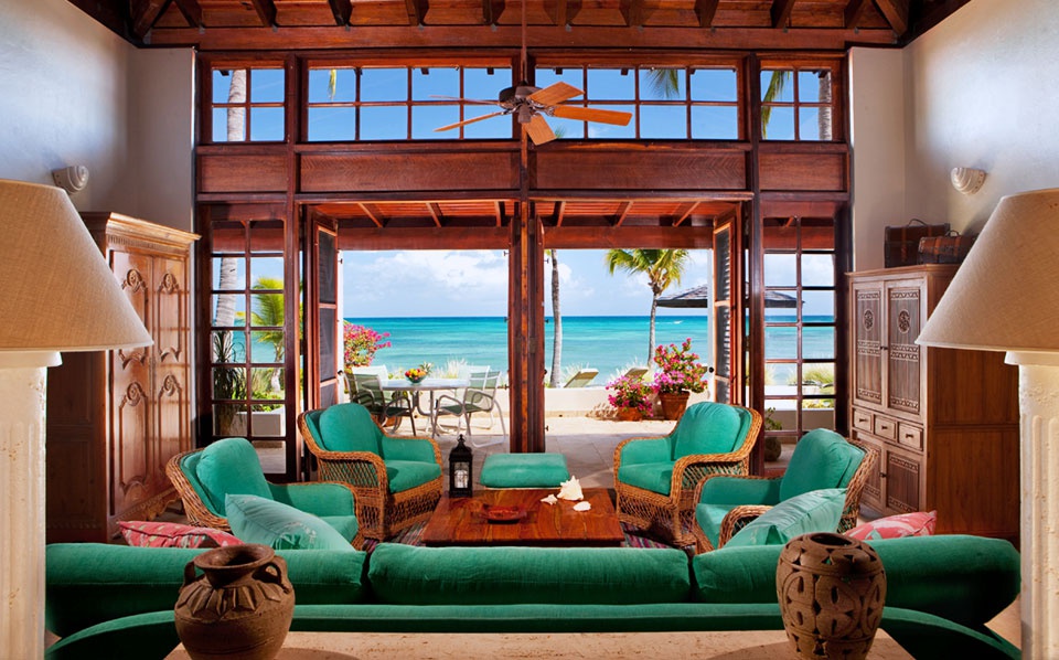 Ексклюзивна Jumby Bay, A Rosewood Resort, Antigua, розсіяна на зелених клумбах колишнього цукрового заводу, невеликий приватний острів Jumbay Bay з 300 акрів, відомий своїми різноманітними природним світом і білими пляжами. Цей приватний курорт, який плавлений на моторних човнах біля моря, пропонує ексклюзивний рівень сервісу для туристів. Саме там, де кожен дихає і самотній - прогулянка на пляжах може зустрітися рідкісні сині пелікани, білі подряпини і морські черепахи, а в еф хвилі дивляться коралові риби. Головний будинок Нерухомості з розкішними галерейними списками та простою терасою, що складається з іспанського колоніального стилю; її вид добре доповнюється прямокутним басейном.