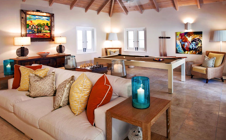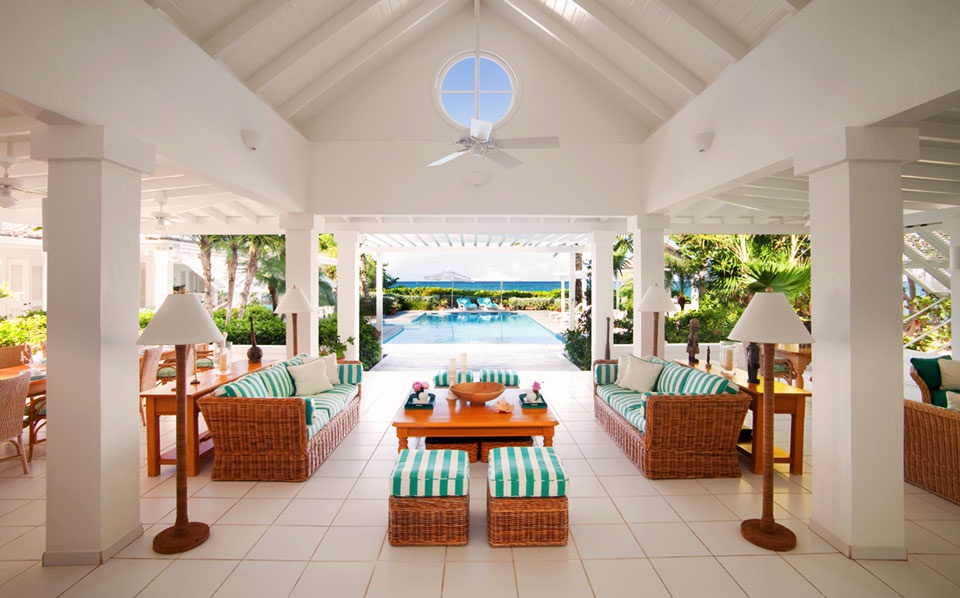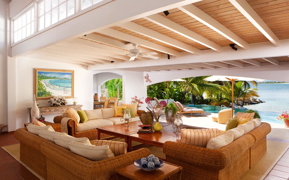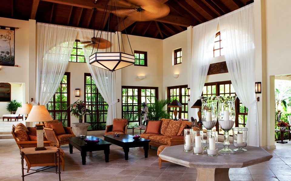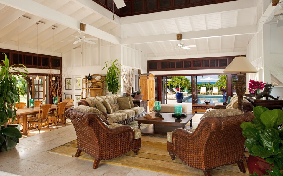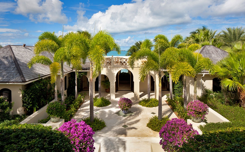 Ексклюзивна Jumby Bay, A Rosewood Resort, Antigua, розсіяна на зелених клумбах колишнього цукрового заводу, невеликий приватний острів Jumbay Bay з 300 акрів, відомий своїми різноманітними природним світом і білими пляжами. Цей приватний курорт, який плавлений на моторних човнах біля моря, пропонує ексклюзивний рівень сервісу для туристів. Саме там, де кожен дихає і самотній - прогулянка на пляжах може зустрітися рідкісні сині пелікани, білі подряпини і морські черепахи, а в еф хвилі дивляться коралові риби. Головний будинок Нерухомості з розкішними галерейними списками та простою терасою, що складається з іспанського колоніального стилю; її вид добре доповнюється прямокутним басейном.