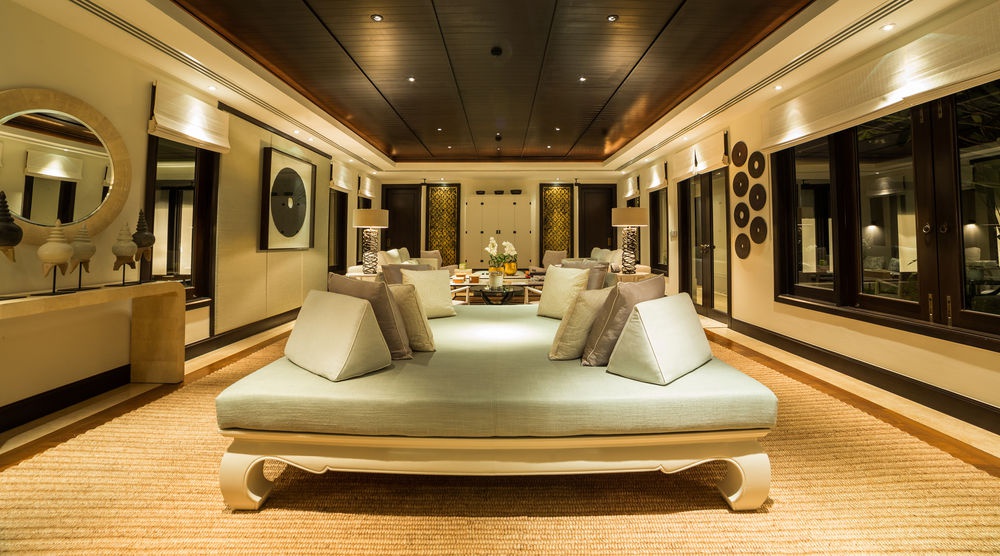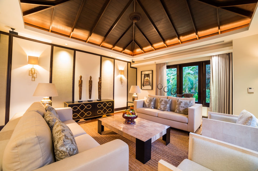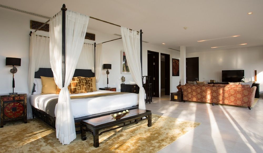 5 Спальня Ocean Front Residence: - 1100 м1 часй Гостинна вілла над пляжем, що складається з декількох павільйонів, включає в себе вітальні і обідні зони, кухню, п'ять спалень (три з king-size ліжками і два з двома односпальними ліжками) з санвузлом, тераса з 20-метровим басейном і зон відпочинку. Максимальне розміщення 15 дорослих або 10 дорослих + 5 дітей.