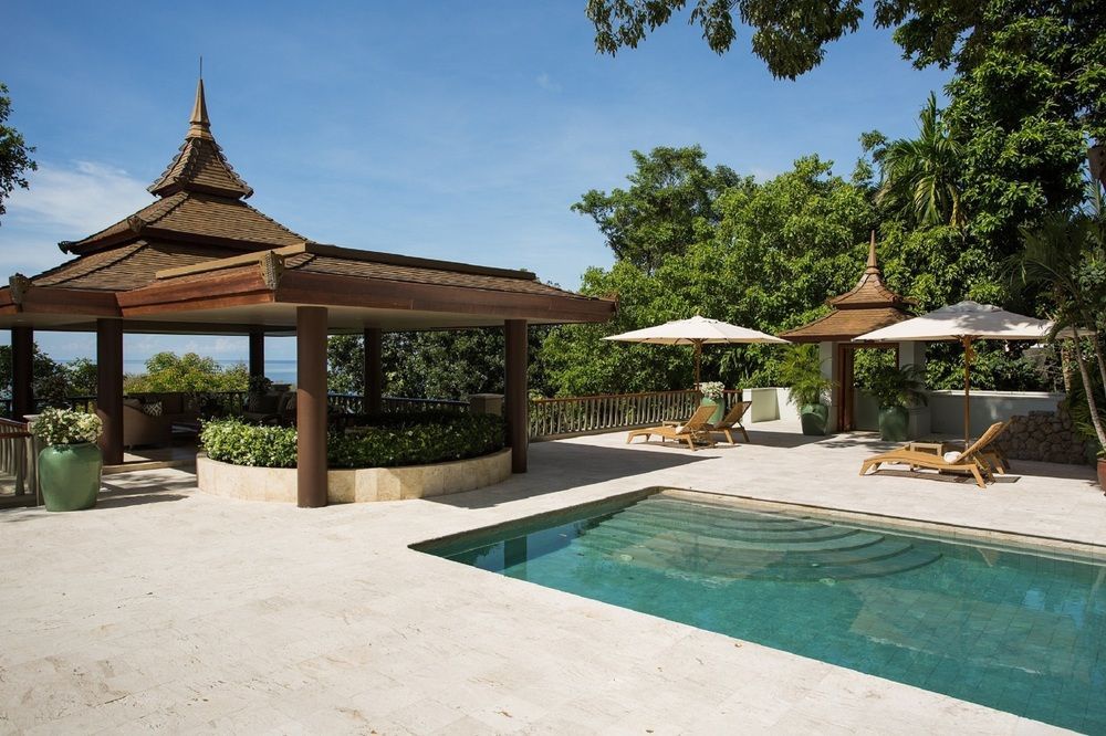 Океан View Pool Suite: - 230 м1 часй Готель розташований в найвищій точці курорту, складається з спальні з двоспальним ліжком king-size, гостьовою зоною, двома санвузлами з душовими кабінами в відкритому повітрі, тераси з 9-метровим басейном і видом на море. Максимальне розміщення 3 дорослих або 2 дорослих + 2 дітей.