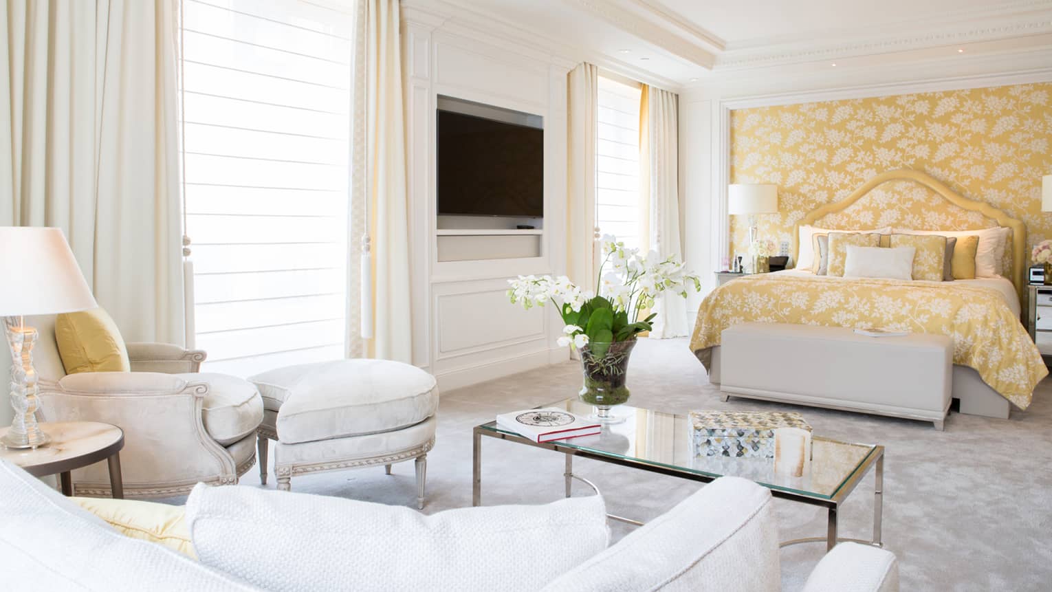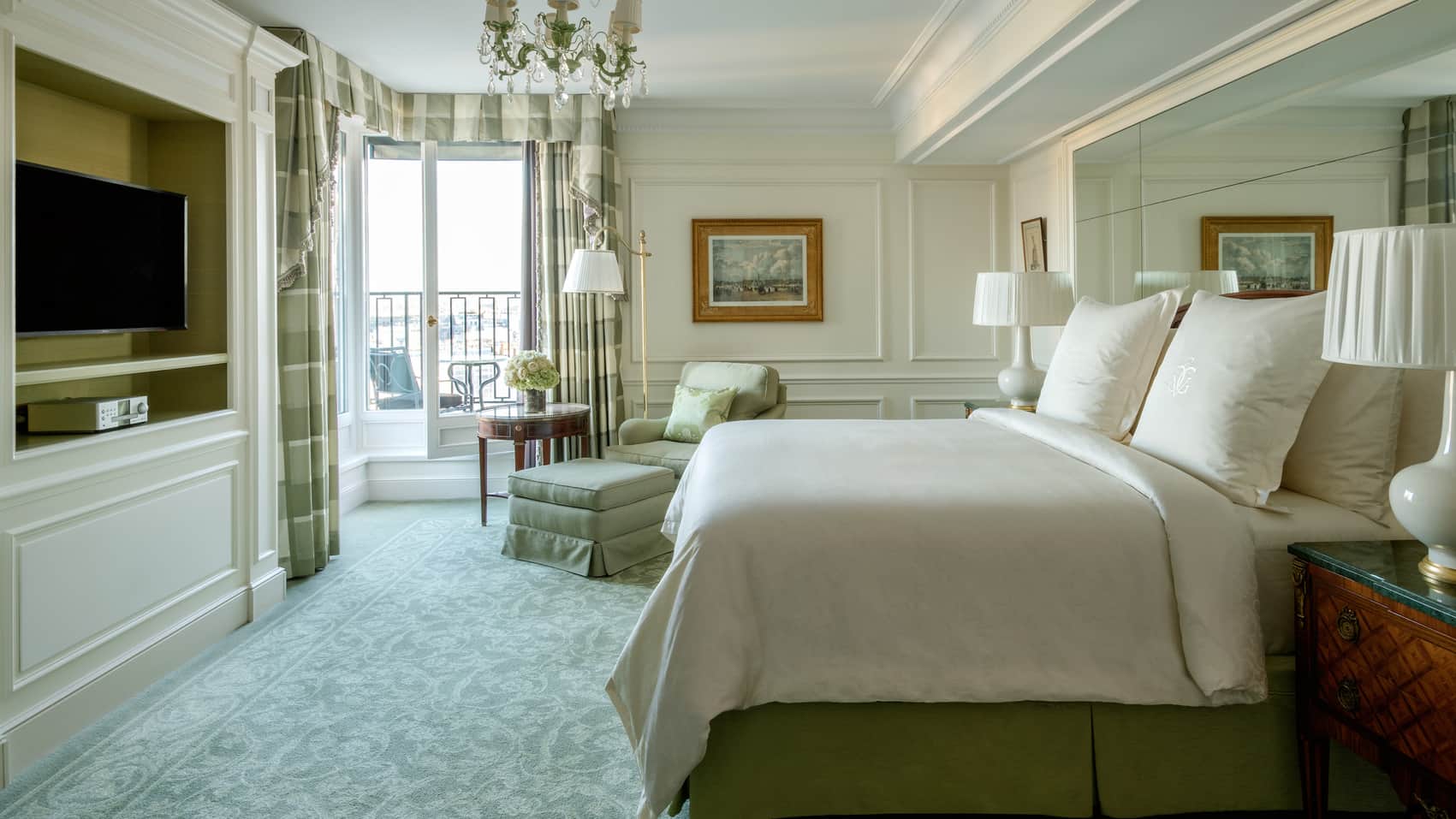 160 кв. м. Шикарний світлий люкс з травертиновими підлогами та декором зі шкіри розташований на 8-му поверсі будівлі готелю. Номер складається зі спальні з ліжком «кing-size», кабінету, вітальні, ванної кімнати з нескінченною ванною зі струменями з системою хромотерапії, що розслаблює, гостьової дамської кімнати, просторого гардеробу. З номера відкривається 360-градусний краєвид на Ейфелеву вежу. Максимальне розміщення: 2 дорослі.