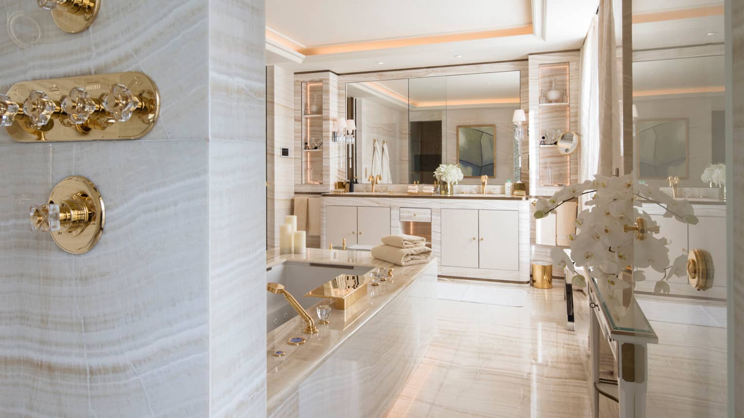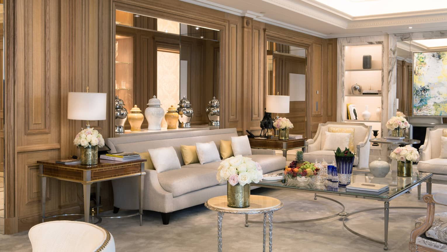 245 кв. м. Розкішні люкси розташовані на 1-му поверсі. Номери складаються з 1-ї або 2-х спалень, гардеробної, вітальні з мармуровим каміном, їдальні (на 8 гостей), кабінету, повністю обладнаної кухні, 1-ї або 2-х ванних кімнат з ванною та окремою душовою кабіною (одна з парової лазнею), гостьового туалету та тераси з видом на історичний фонтан «Трьох грацій» у стилі Арт Деко. Інтер'єри прикрашені старовинними меблями XVIII та XIX ст. Доступне бронювання суміжного номера. Максимальне розміщення: 4 особи.