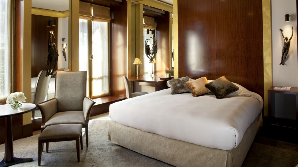 Пориньте в елегантні паризькі апартаменти площею від 70 до 100 квадратних метрів (753-1076 квадратних футів), які містять простору вітальню з двома зонами відпочинку та окрему спальню з двоспальним ліжком розміру "king-size" і гардеробною. Люкс можна з'єднати з другою спальнею.