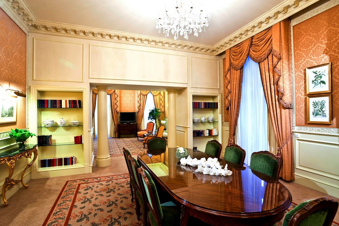 Інтер'єри готелю поєднують витончену розкіш та останні технічні досягнення. Елегантні ресторани, кафе та бари готелю пропонують вибір страв та напоїв на будь-який смак: гастрономічний ресторан Le Ciel з меню австрійської та французької кухонь та японський ресторан Unkai, Grand Café, де подаються легкі закуски та традиційна віденська випічка, а також готується фірмовий кекс Guglhupf, який можна придбати у гарній упаковці як смачний подарунок з Відня, та відкрита тераса Schanigarten; затишний Lobby Bar Rosengarten та коктейль-бар. 5 сучасно оснащених конференц-залів та бальний зал забезпечують чудові умови для проведення ділових та урочистих заходів.