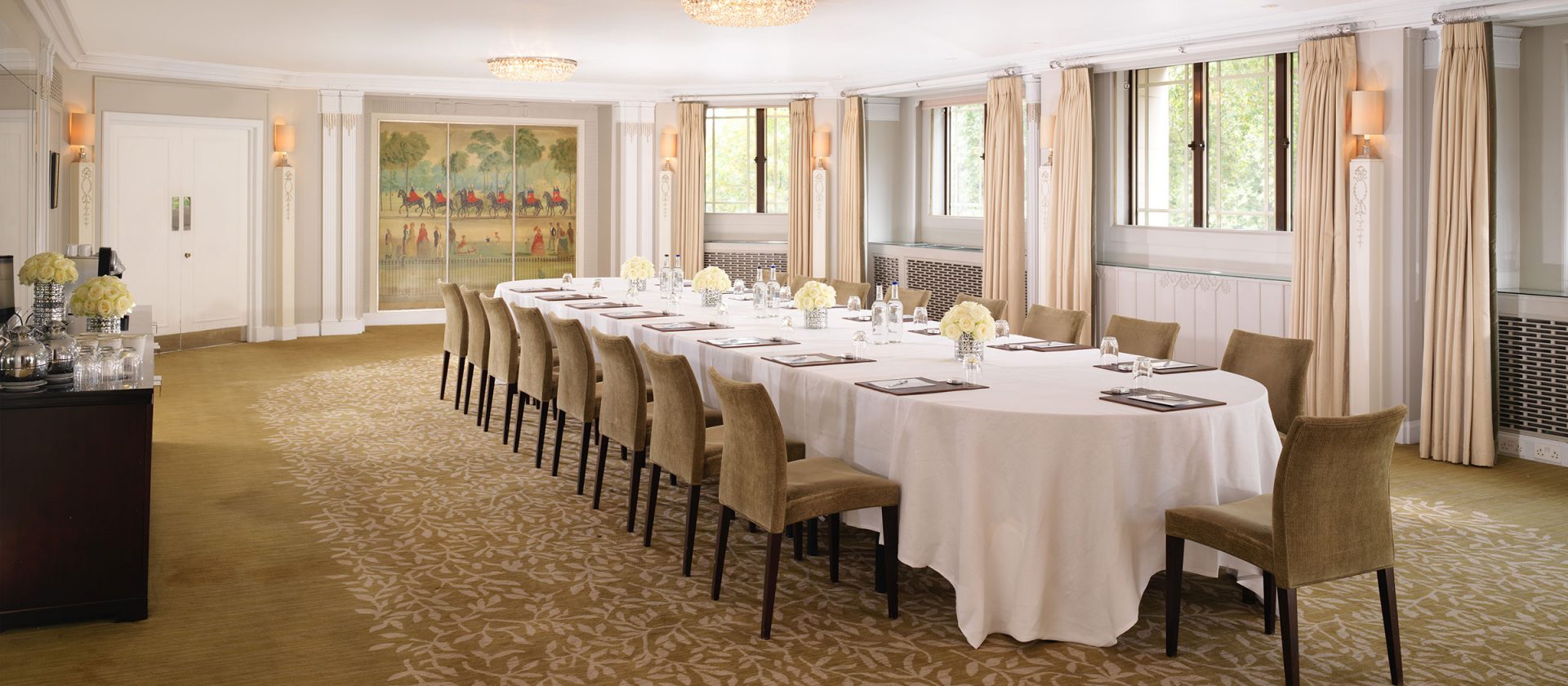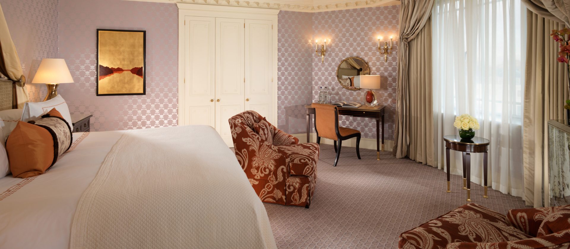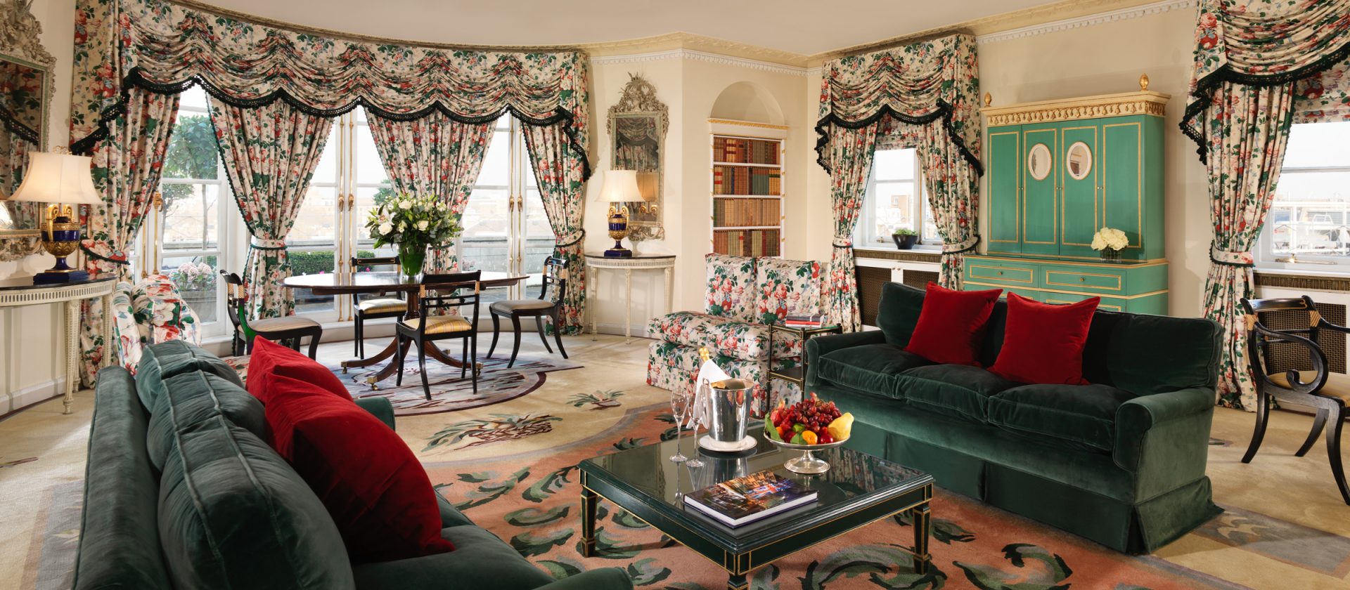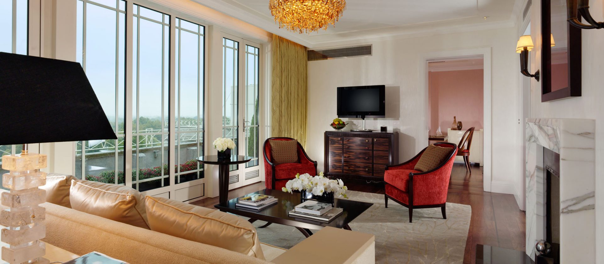 74 кв. м Розкішні костюми названі одним з найпрестижніших районів Лондона, Белгравія. Номер складається з спальні з ліжком розміру kingsize і рекреаційних зон, окремою кімнатою, яка об\'єднує купе, стільці, письмовий стіл, блискучий обідній стіл, велика мармурова ванна кімната з ванною, двоспальне оболонка і окрема душова кабіна, палац. Вид на центральну Лондонську площу трав\'янистого парку. Послуги палацу доступні. Місце: 2 чол.