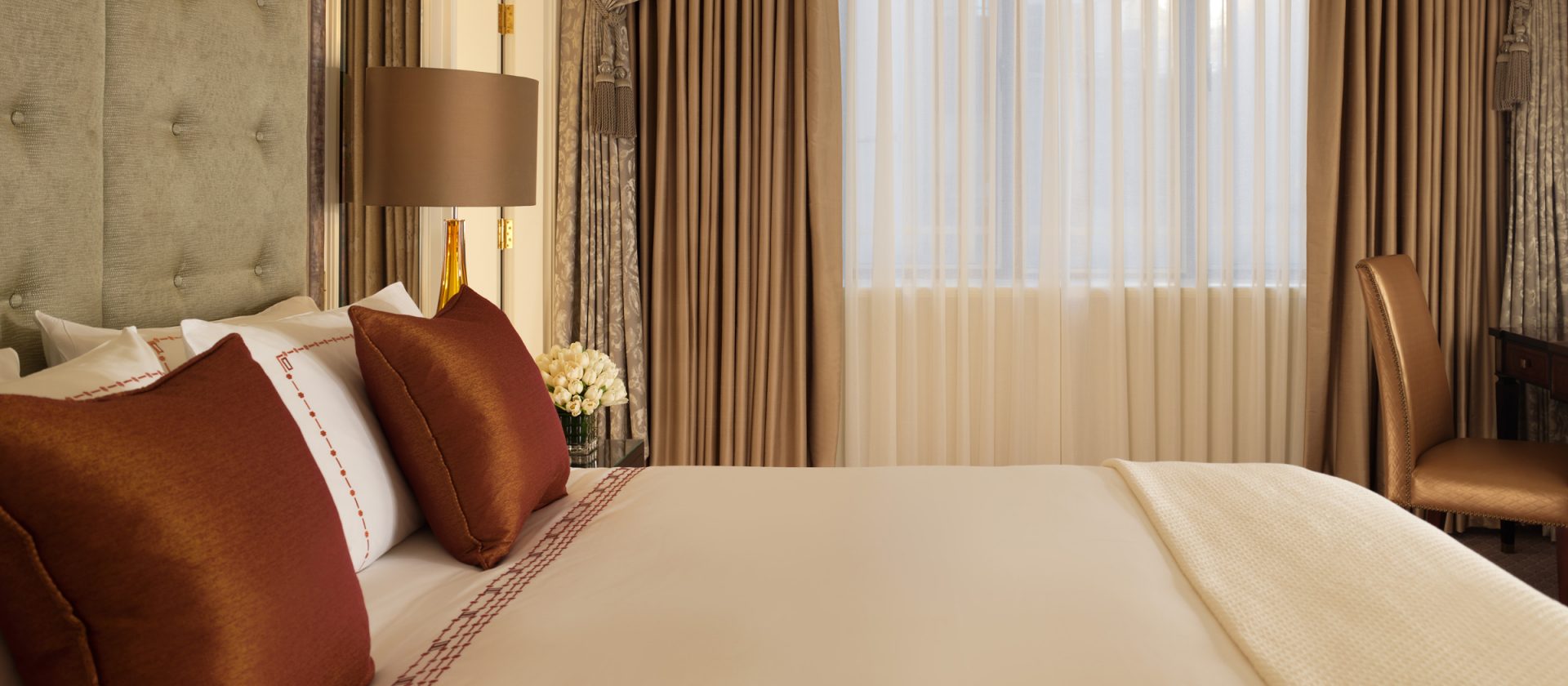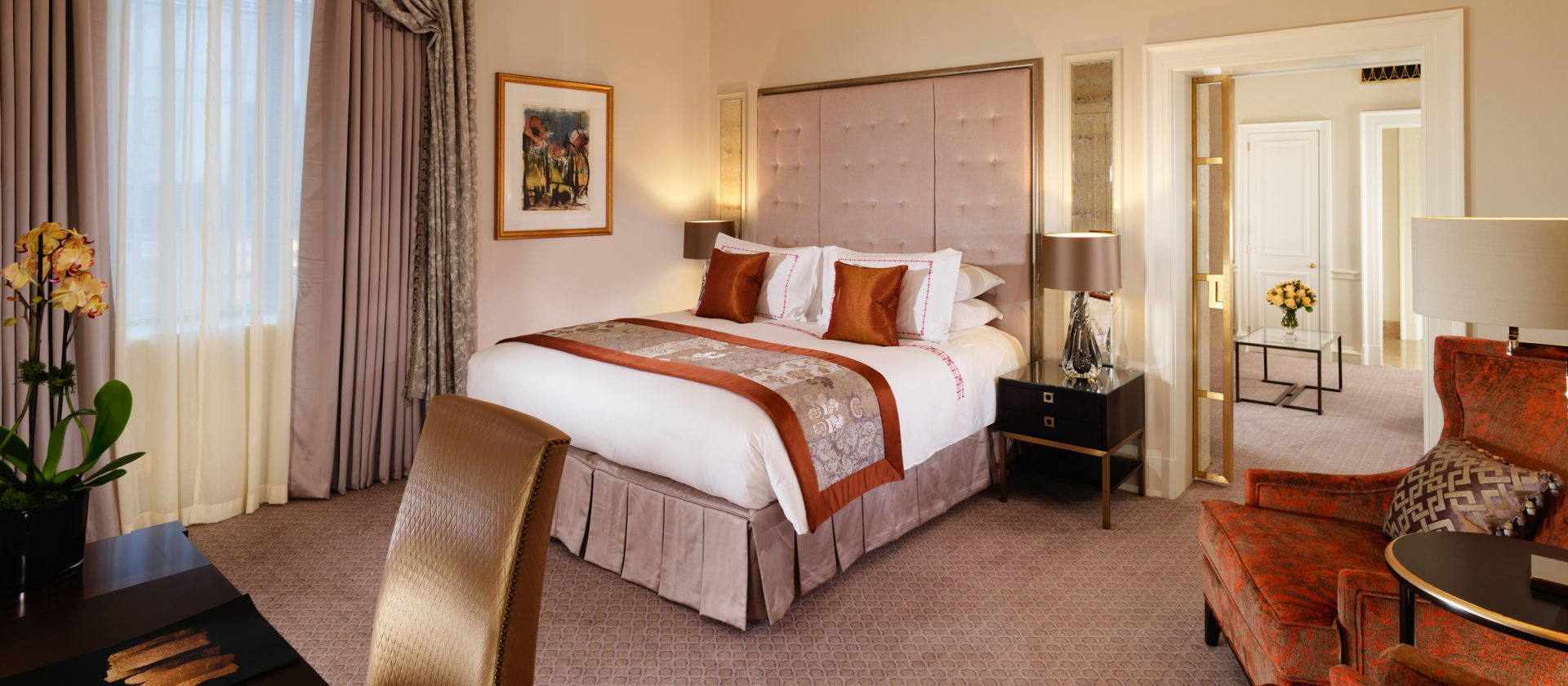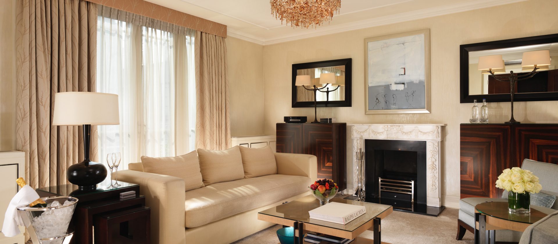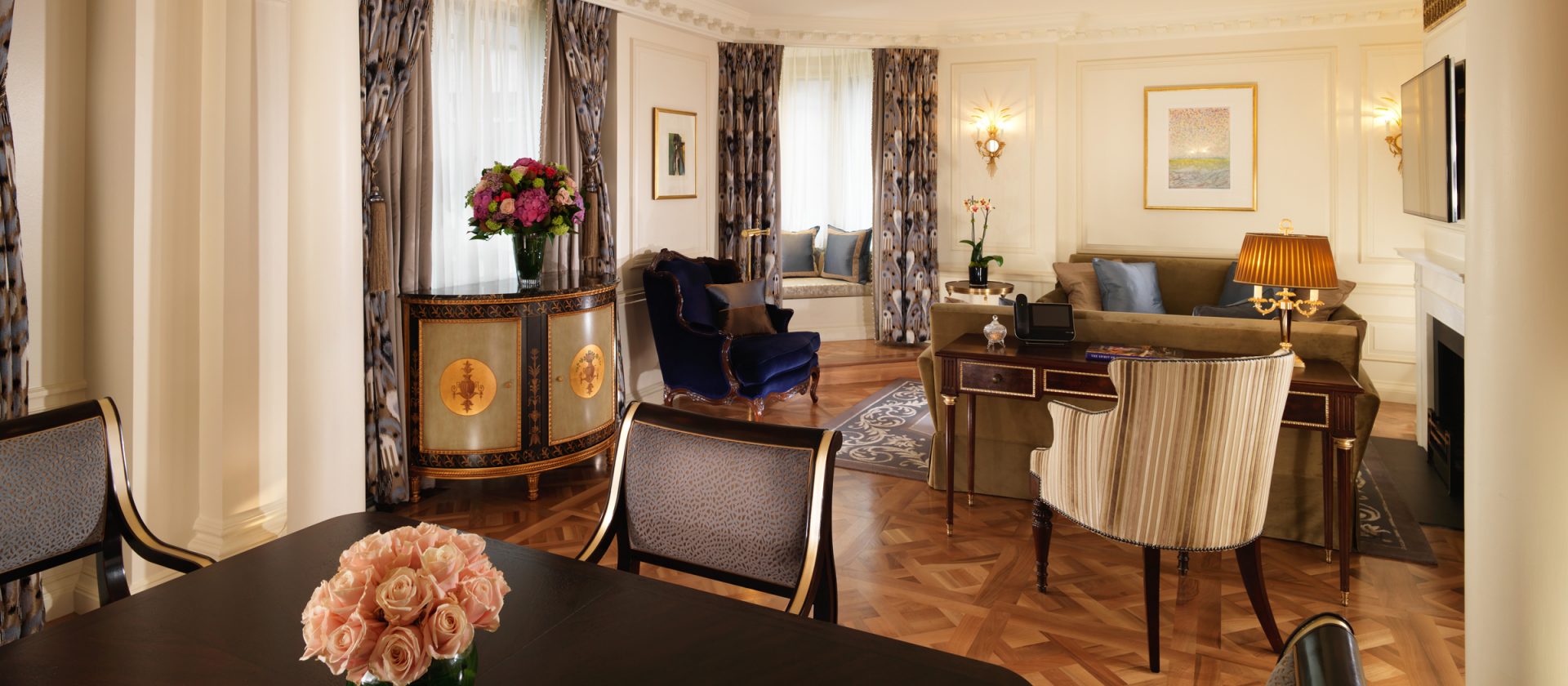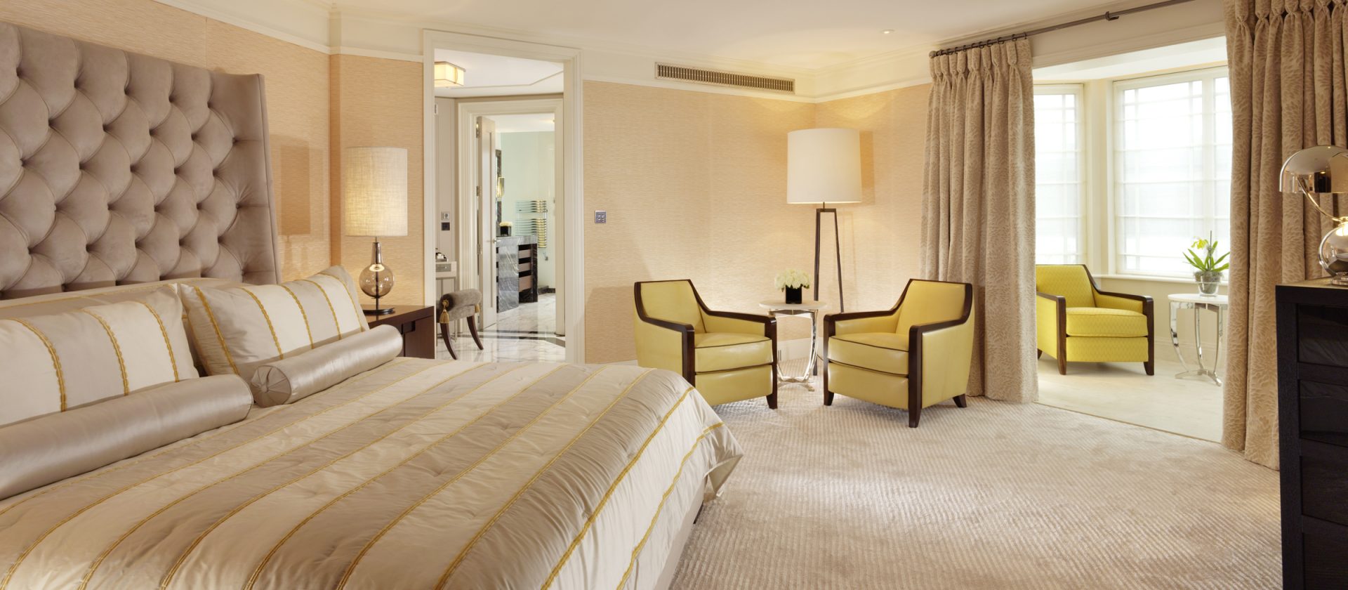 51 кв. м. Розкішний люкс, який підходить для тривалого перебування в готелі, складається з спальні з ліжком king-size, гостьового відокремленого від спальні зі скляними розсувними дверцятами і меблізованим диваном, кріслами, окремою робочою зоною з письмовим столом, великим мармуровим ванною кімнатою, подвійним раком і окремим душем. Вид центрального Лондонського р-ну Майфрі або внутрішнього суду готелю. Місце: 2 чол.