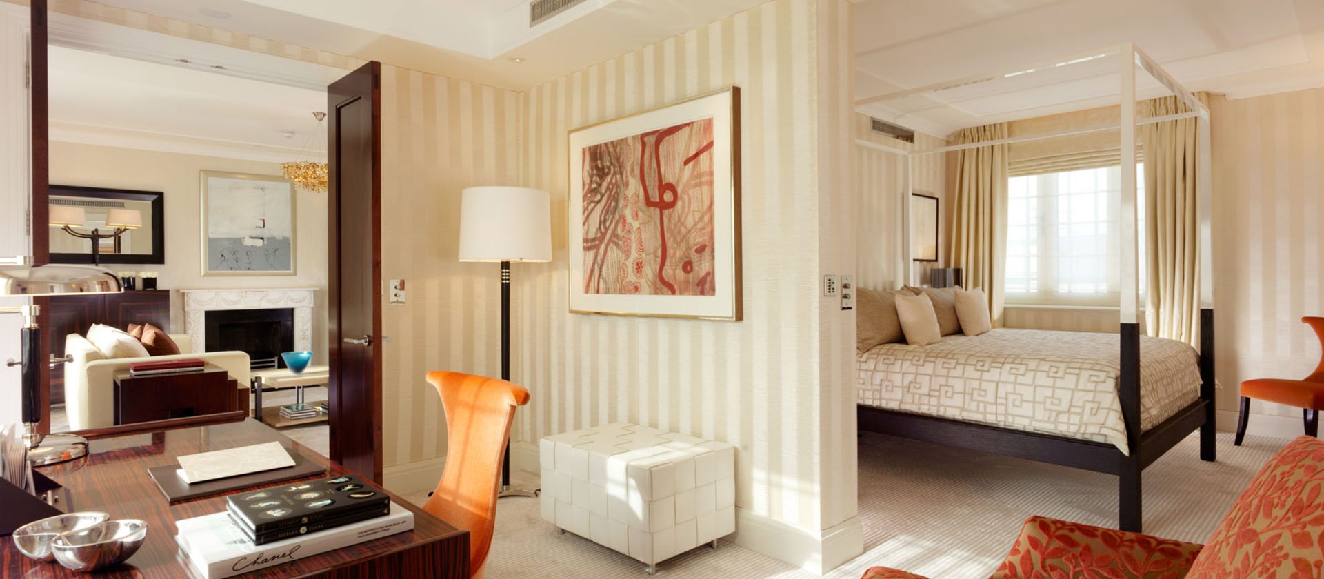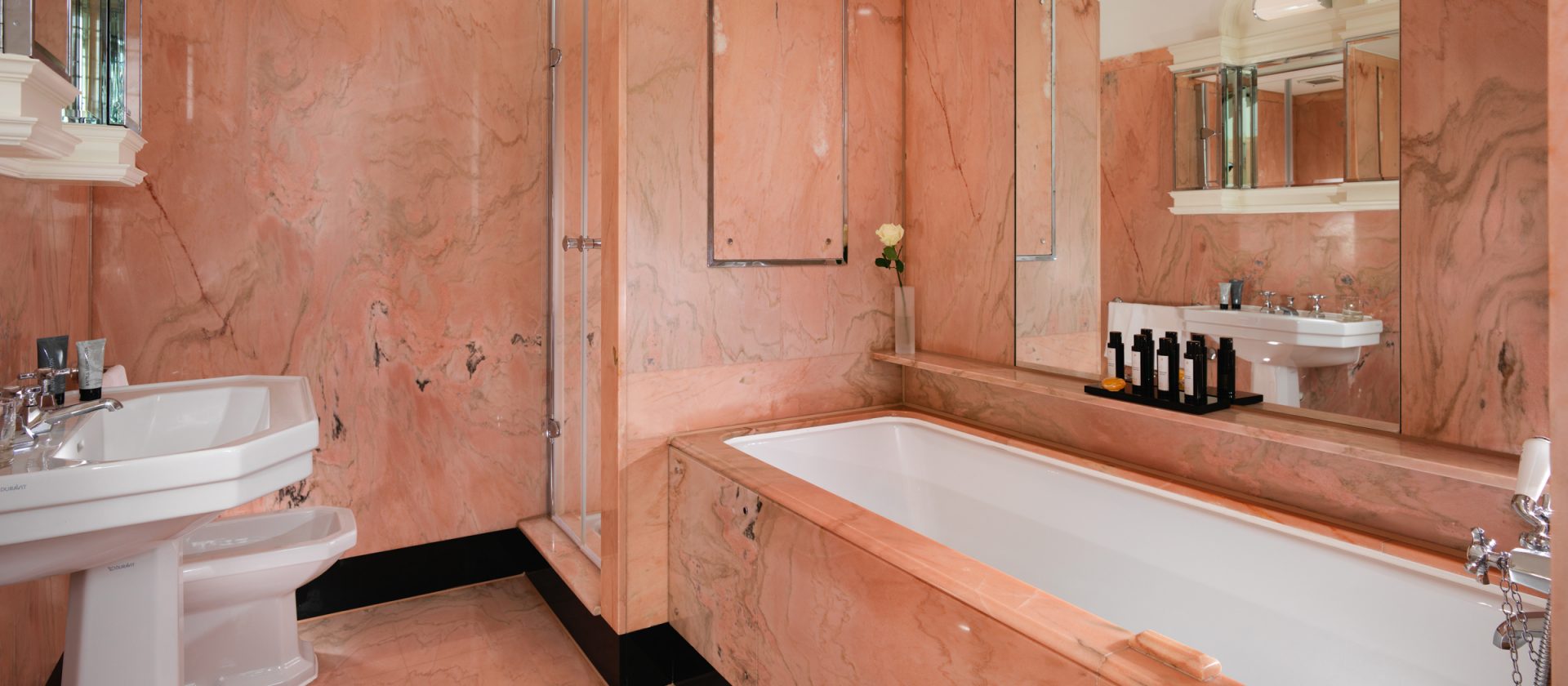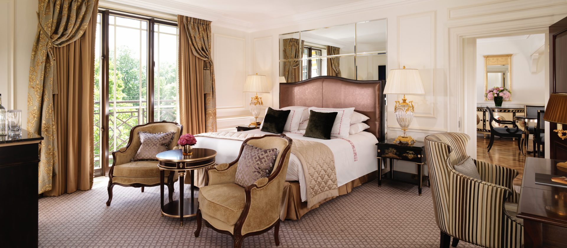 133 кв. м. У 1950-ті рр. Олівець Месель. Marlene Dietrich, Noel Kovard і Sylvester Stallon знаходяться в кімнаті в різні часи. З спальні з ліжком king-size, їдальня, ванна кімната з ванною, подвійна раковина і окрема душова кабіна, гостьова ванна кімната, шафа, тераса з видом на Mayfair і Hyde Park. У палаці і бронюванні суміжного люксу доступні. Місце: 2 чол.