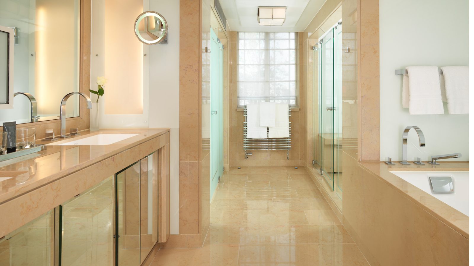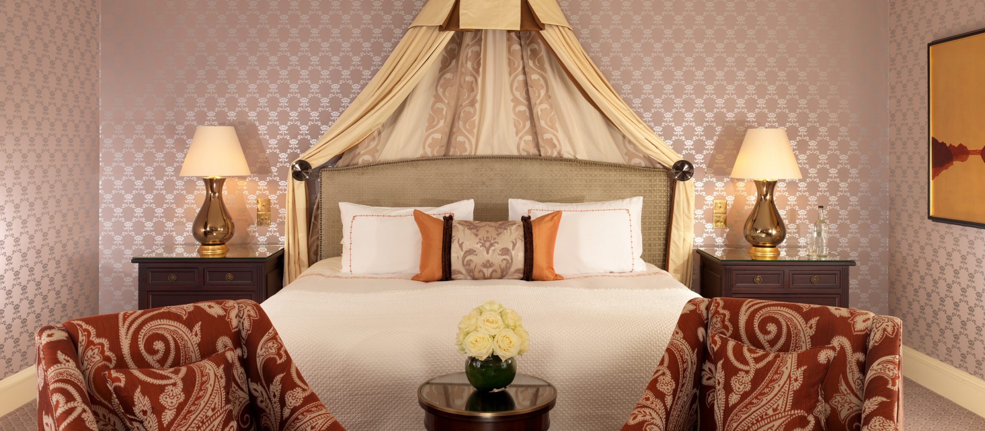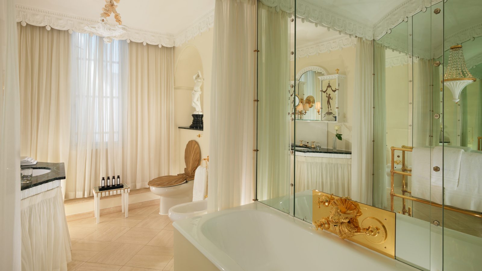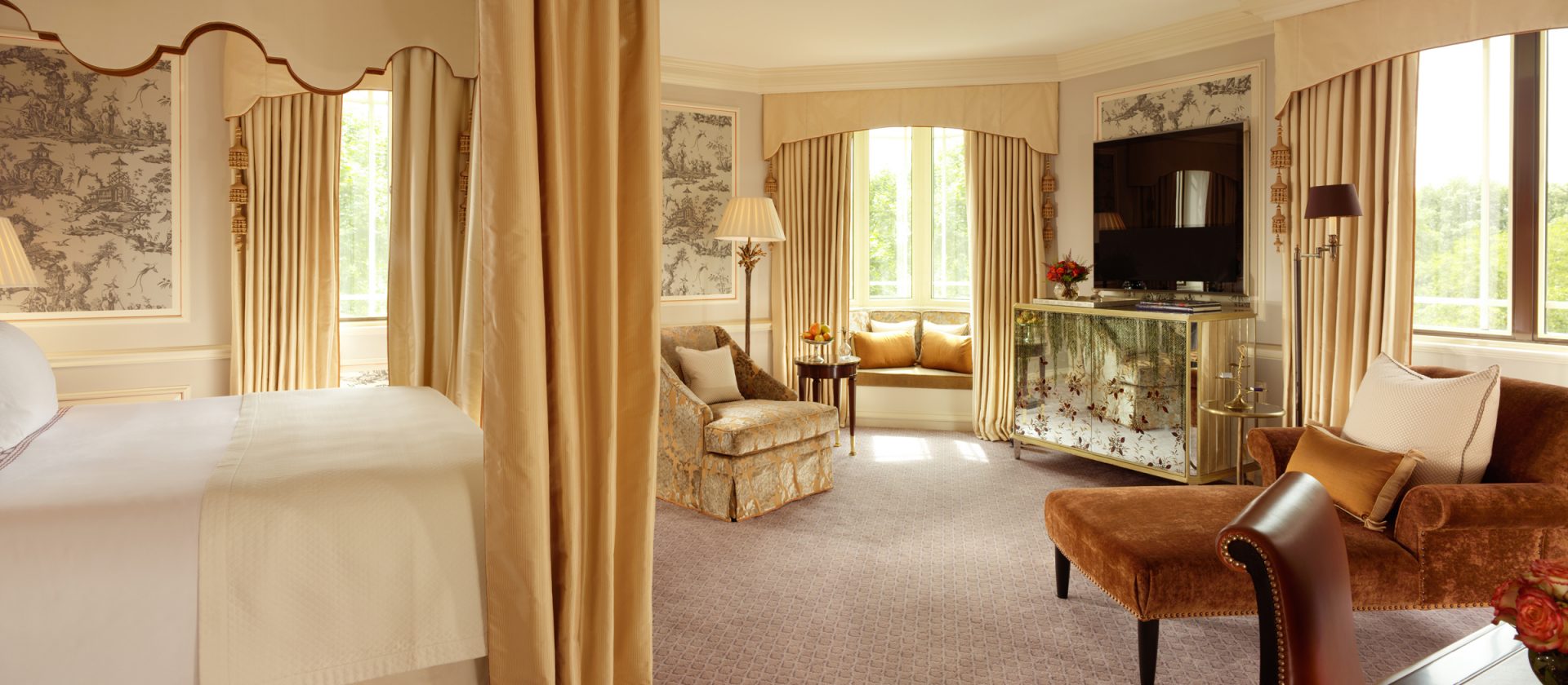 133 кв. м. У 1950-ті рр. Олівець Месель. Marlene Dietrich, Noel Kovard і Sylvester Stallon знаходяться в кімнаті в різні часи. З спальні з ліжком king-size, їдальня, ванна кімната з ванною, подвійна раковина і окрема душова кабіна, гостьова ванна кімната, шафа, тераса з видом на Mayfair і Hyde Park. У палаці і бронюванні суміжного люксу доступні. Місце: 2 чол.