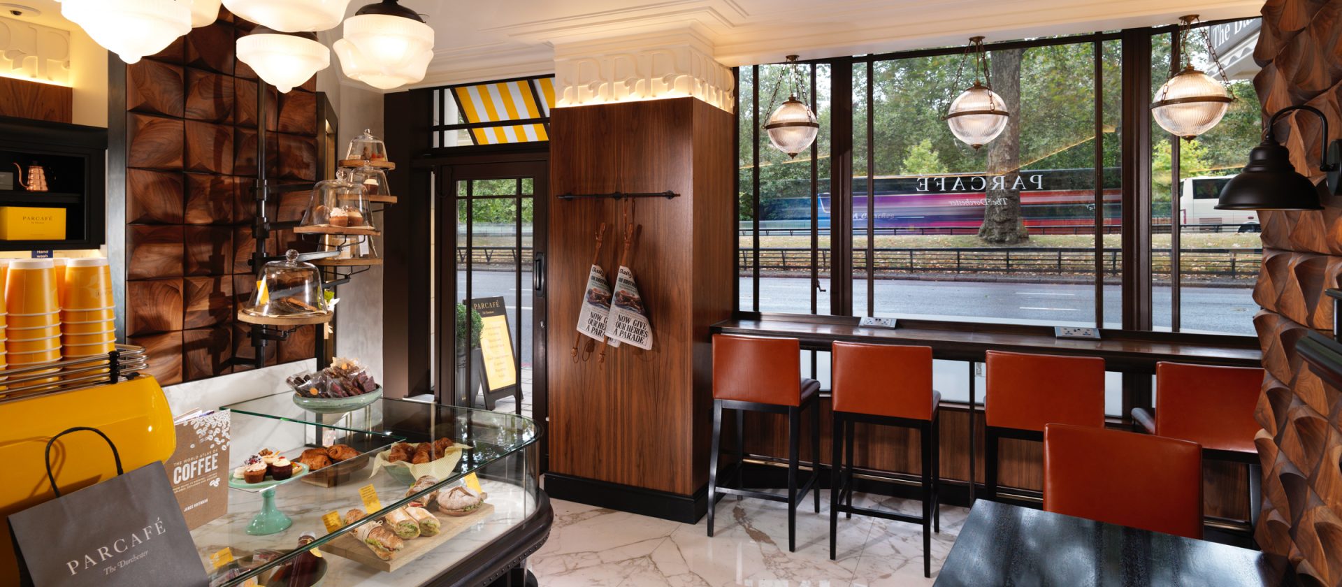 Є 250 готелів і люків, кожен з яких в казковому класичному англійському стилі. Прості і елегантні номери в Дорчестері обладнані індивідуальними меблями, прикрашеними дизайнерськими тканинами, надзвичайно комфортними ліжками і італійськими мармуровими ванними кімнатами. Більшість люків відкривають захоплюючий вид на Hyde Park. Костюми можуть поєднуватися з іншими номерами (до 5 номерів).