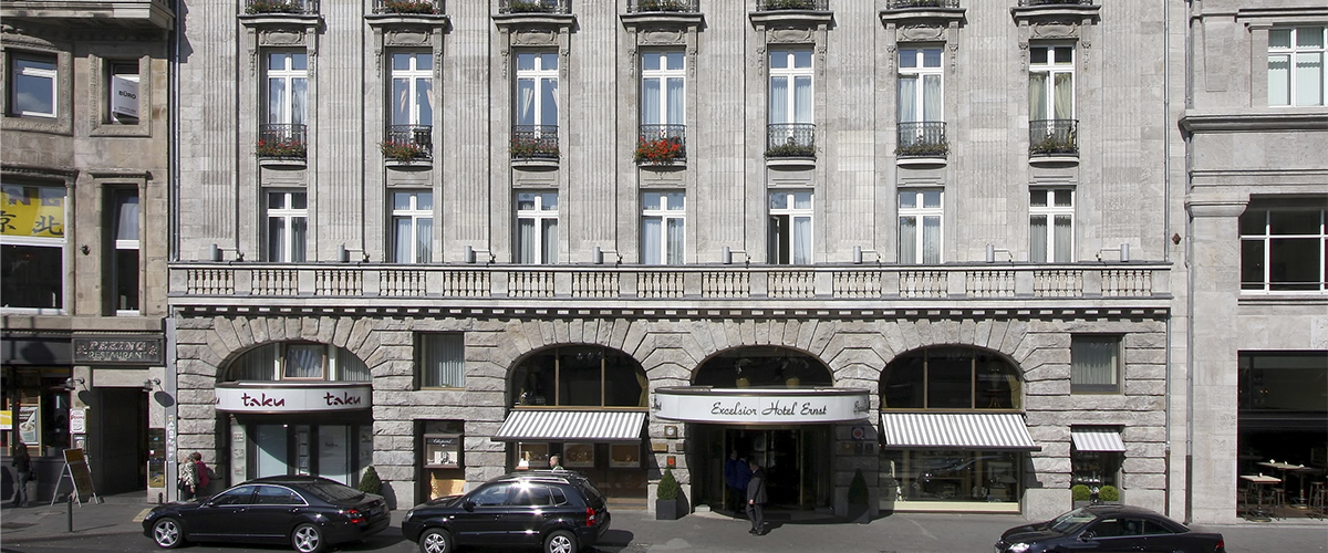 Excelsior Hotel Ernst був розташований в величному особняку, побудованому в 1863 році, навпроти Kelnit, в центрі міста. Внутрішнє видалення готелю панує кінець 19 століття - мармурові колони, кольорові скління, ріжучі з благородного дерева, старі картини, ретельно підібрані елементи декору. У номерах найбільш сучасні умови і індивідуальні елегантні втручання в класичному стилі, які зберігаються в теплих сонячних тонах, при видаленні дорогих тканин, м'яких килимів на підлозі, дрібних меблів, кришталево люстр, декорованих античних предметів і вишуканих картин.