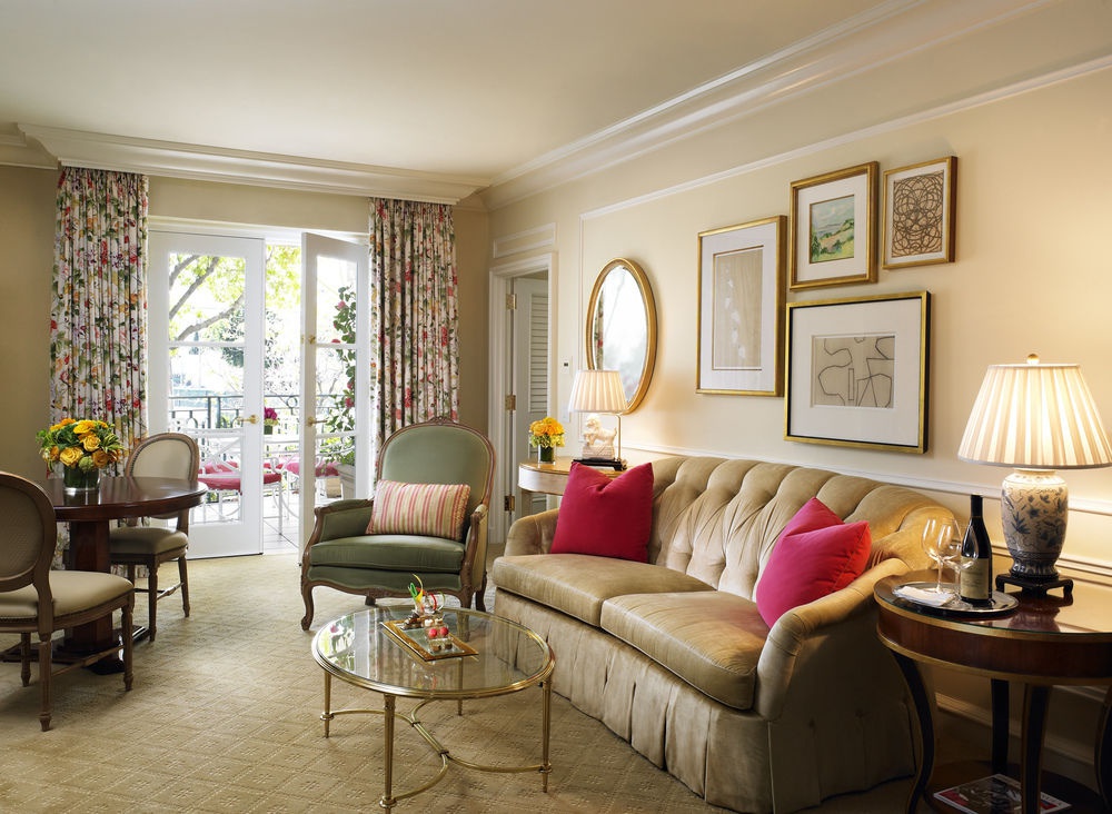 Люкс Каліфорнія: 106.8 кв.м. Виявлений декорований номер, розташований від 3 до 5 поверхів, складається з залу, спальні з двоспальним ліжком king-size, гостя з обідньою зоною 4 осіб, ванна кімната з ванною, окремий душ і двоповерховий рак, гостьовий туалет, шафа, французький балкон з видом на сад або фонтан. Місце чотири. Гості можуть скористатися готелем.