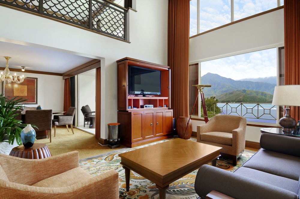 У готелі 252 кількість різних категорій, включаючи Гість номерів і Люкс. Номери реалізовані в елегантному сучасному стилі, доповненому елементами декору на Гавайських традиціях. Чудовий вигляд локусних вод затоки Ганалеї, пивних садів і мальовничих гір Балі Хай. Гості можуть скористатися послугами палацу. У кожному номері: кондиціонер, телефон, LCD телевізор з системою домашнього кінотеатру, CD-плеєр, iPOD dock, безкоштовний доступ до Інтернету, сейф, вино бар / холодильник, качка і гладка дошка, фен, халата, шапки.