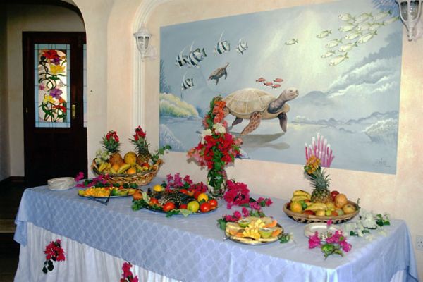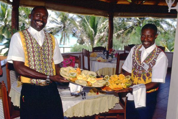 Ресторан готелю розташований на відкритому терасі, де відкривається вид на океан. Ми пропонуємо ексклюзивні страви. Рестора спеціалізується на рибному і морепродуктах. На невеликому, незабутньому острові біля узбережжя і барбекю на пляжі.