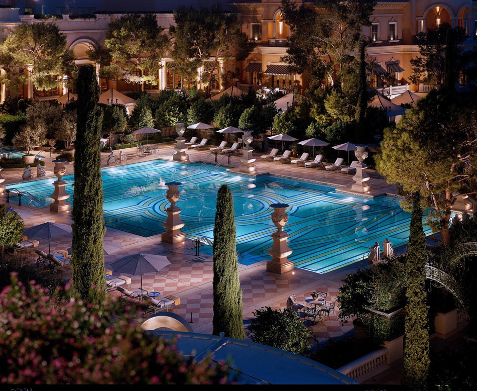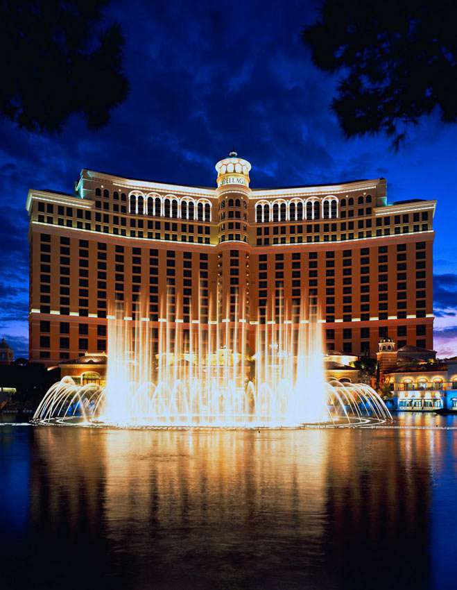 Bellagio - це величезний мега-комплекс, який знаходиться в центрі міста і включає в себе не тільки готельні номери, але і казино, ресторани, нічні клуби, театри, басейни і спа. Готель відрізняє розкіш і вишуканість інтер'єру, а також високий рівень сервісу. Музичні фонтани танцюють під музику Broadway музичних творів і класичних творів фантастично красивих і унікальних шоу води, світла і кольору кожного разу. За кілька разів на день перед фасадом готелю і його картою. На березі Великого озера, лінія Італійського озера Комо.