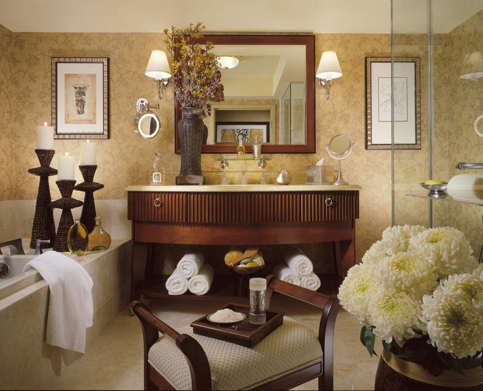 У лобі гості зустрінуться з величезним 2,000 gigantic квіткою, виготовленим з муранського скління художника Dale Chihuly. Квіти поширюють тонкий запах, який забарвлюється через готельні коридори. У готелі є житловий ботанічний сад, де експонат змінюється кілька разів на рік.