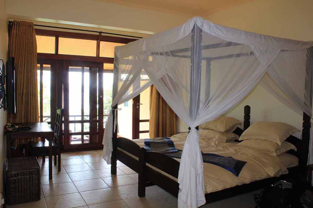 У готелі 30 котеджів, де розташовані виконавчі однокімнатні номери, виконавчий двомісний номер, Стандартний Люкс з окремою вітальнею, шафою-купе Люкс і президентським люксом. У всіх куточках є балкони з видом на озеро, спальні з двостороннім і одноповерховими ліжками з москітною сітку, санвузли з душовими кабінами, туалетами, гарячою водою і холодною водою.