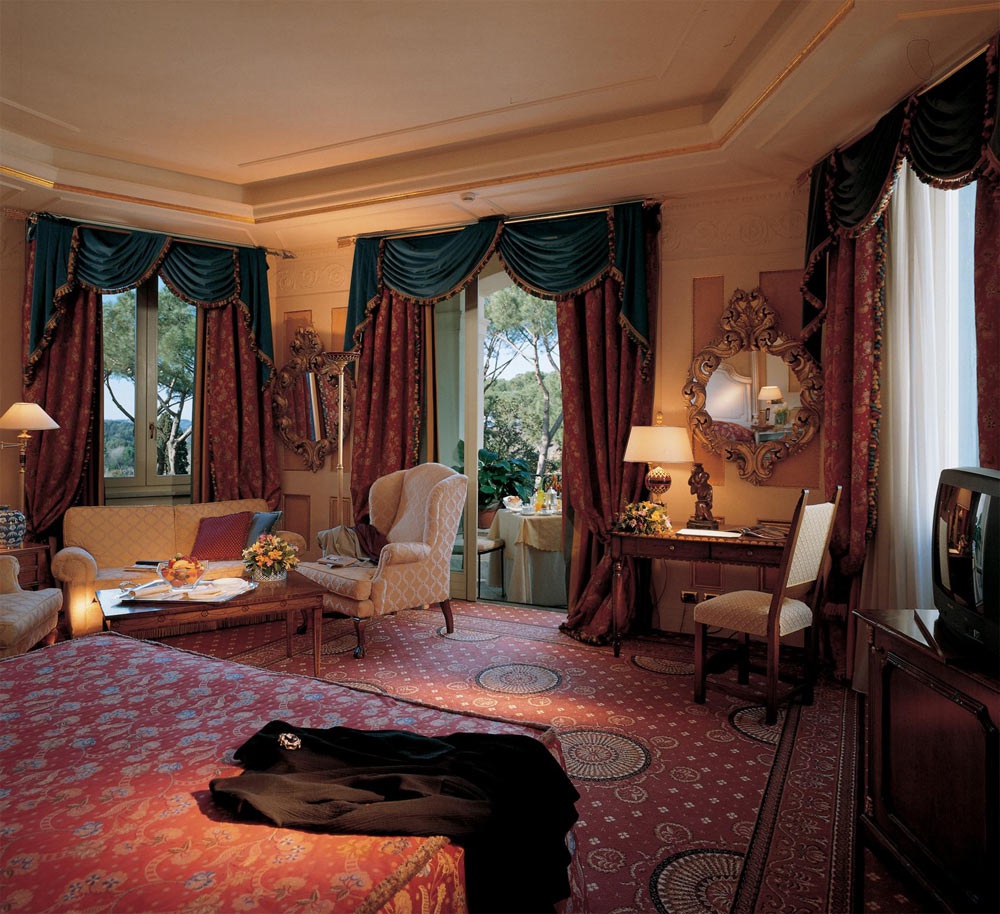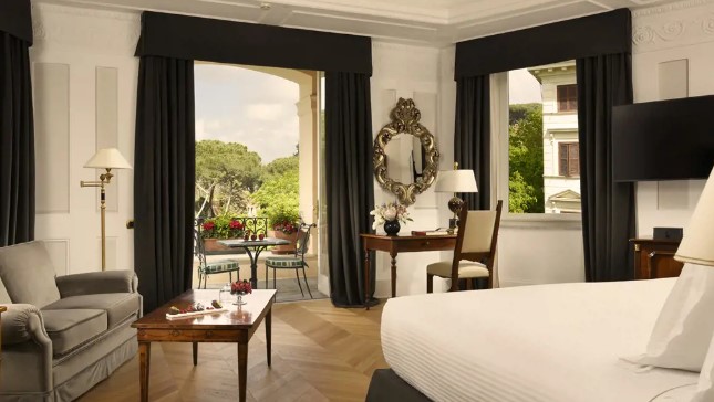 У готелі 69 номерів різних категорій, включаючи 52 Double Superior і Deluxe Rooms, 7 Junior Suites, 9 Suites і 1 Presidential Suite. Інтер'єри номерів відтворюють витончену розкіш у стилі бароко: золоті, небесно-блакитні та насичено червоні тони, вишукана ліпнина, обшивка з цінних порід дерева, драпіровані завіси, антикварні меблі та картини. Частина номерів мають просторі тераси, що виходять на Віллу Боргезе і захоплюючу панораму Риму.