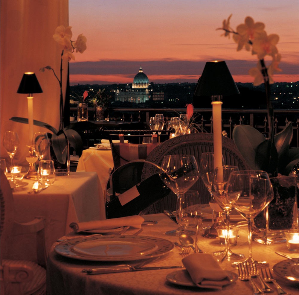 В елегантному залі та на відкритій терасі ресторану La Limonaia, відкритого для сніданків, приватних обідів та вечерь, можна не тільки насолодитися чудовою кухнею, але й помилуватися чудовим краєвидом на Вічне місто.