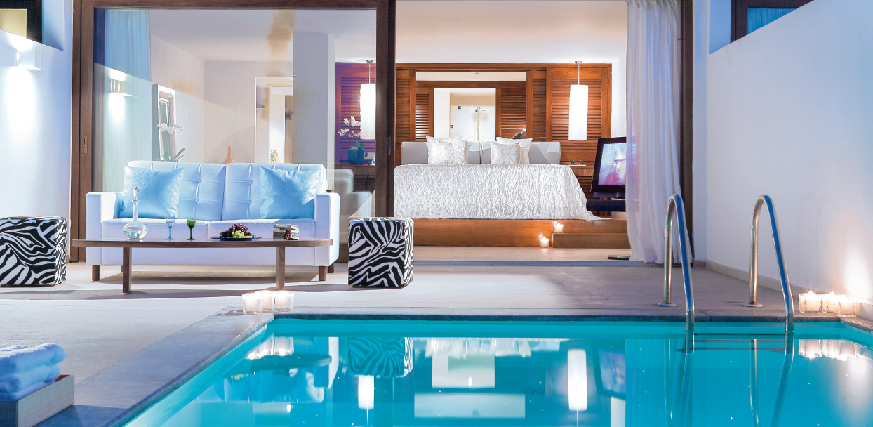 61,5 кв. м. Розташований у крилі Lagoon, перший поверх. Планування люксу: спальня з ліжком King size та додатковим ліжком, екстравагантна ванна кімната (24 кв. м) з душовою кабіною, ванною, фітнес зона, басейн Amirandes «Star» (18 кв. м), з підсвічуванням, контролем температури води та водним потоком для вправ, тераса (27,5 кв. м). Вид на море. До послуг гостей: намет на пляжі, тропічний душ просто неба, холодильник для вина. Максимальне розміщення – 2 дорослих та 1 дитина.