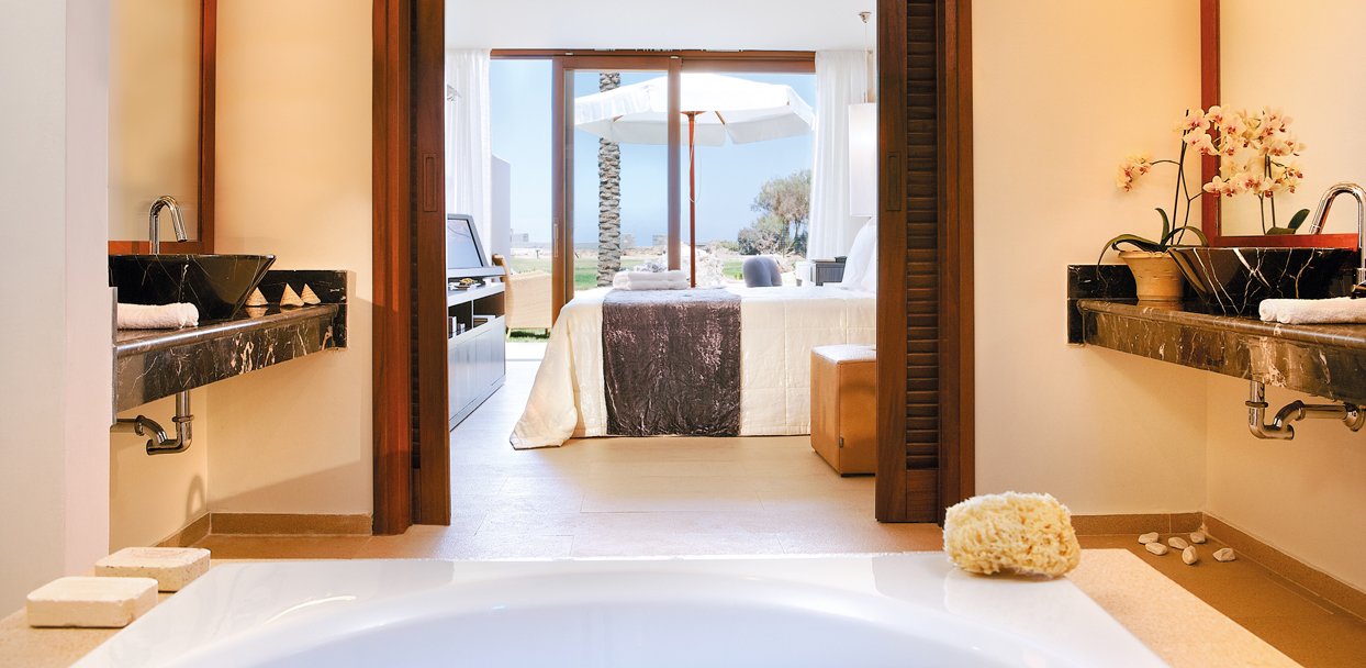 85 кв. м. Розташований у крилі Lagoon, перший поверх. Планування апартаментів: спальня відкритого плану з ліжком King size поєднана з вітальнею, дитяча кімната з двома ліжками має окремий вхід через передпокій, екстравагантна ванна кімната (24 кв. м) з душовою кабіною, ванною, фітнес зона, басейн Amirandes «Star» (18 кв. м) з підсвічуванням, контролем температури води та водним потоком для вправ, тераса (32 кв. м). Вид на море або сад. До послуг гостей приватний намет на пляжі, тропічний душ просто неба, холодильник для вина. Максимальне розміщення – 2 дорослих та 2 дітей.