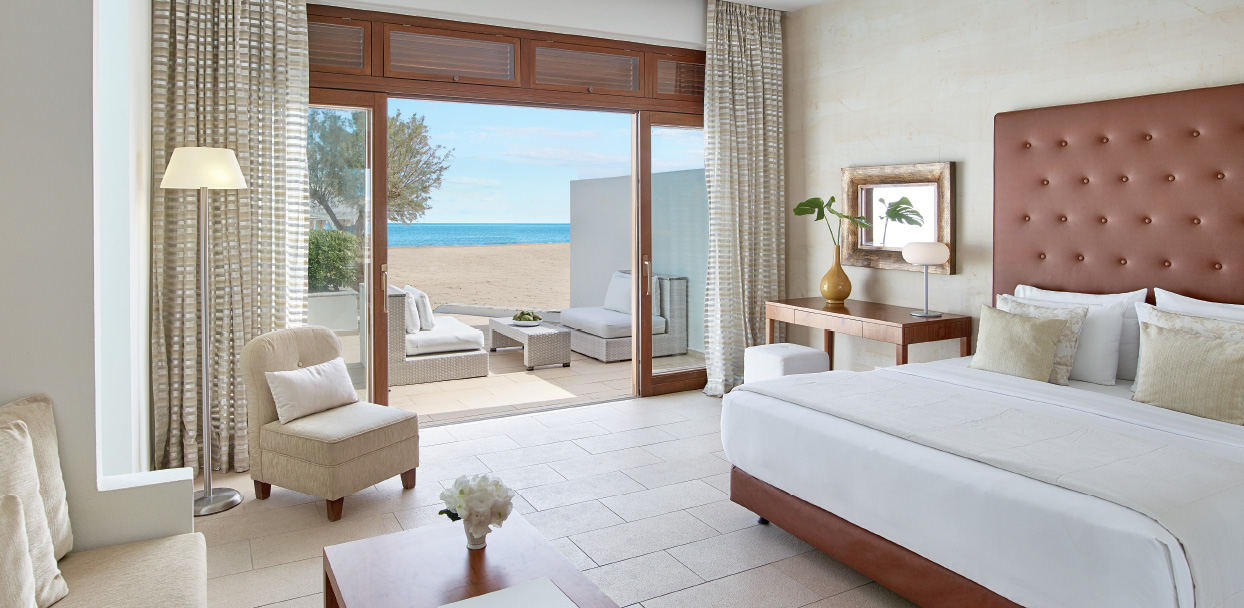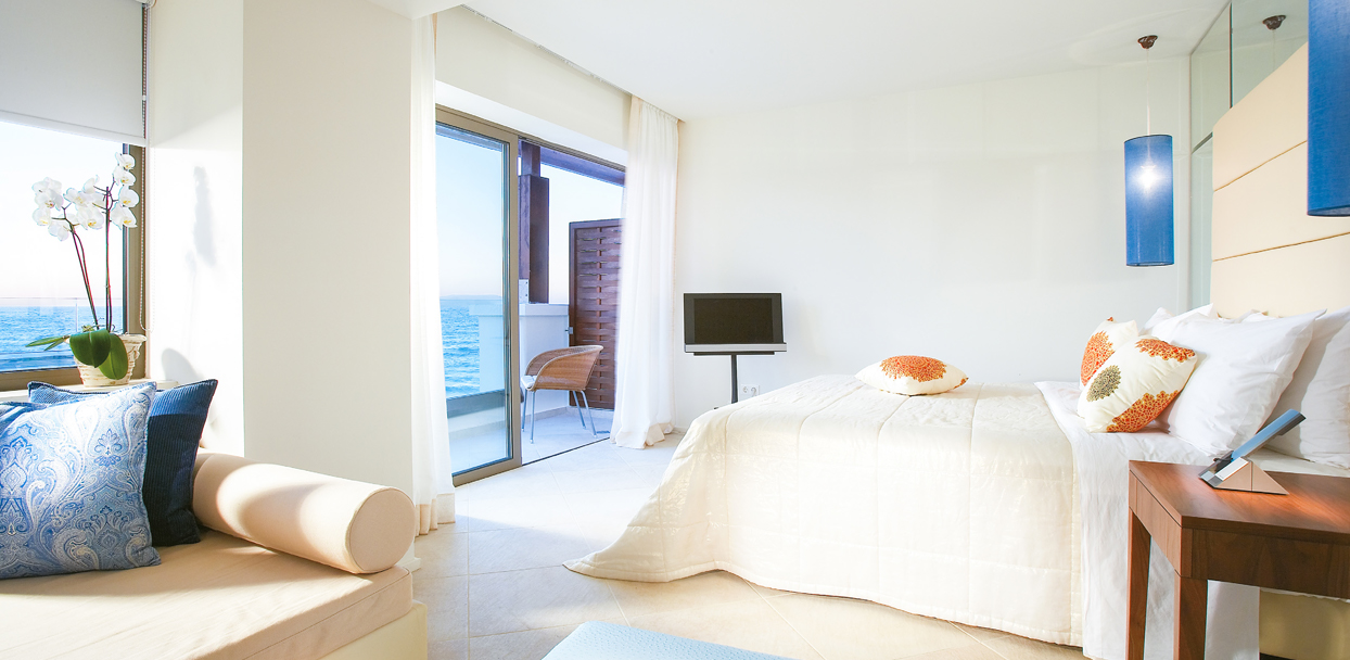 35 кв. м. Розташовується в крилі Candia та Lagoon. Планування номера: спальня з ліжком King size, ванна кімната з душовою кабіною, ванною, раковиною та туалетним столиком, мебльований балкон (6 кв. м). Вид на море. Максимальне розміщення – 2 дорослих та 1 дитина.