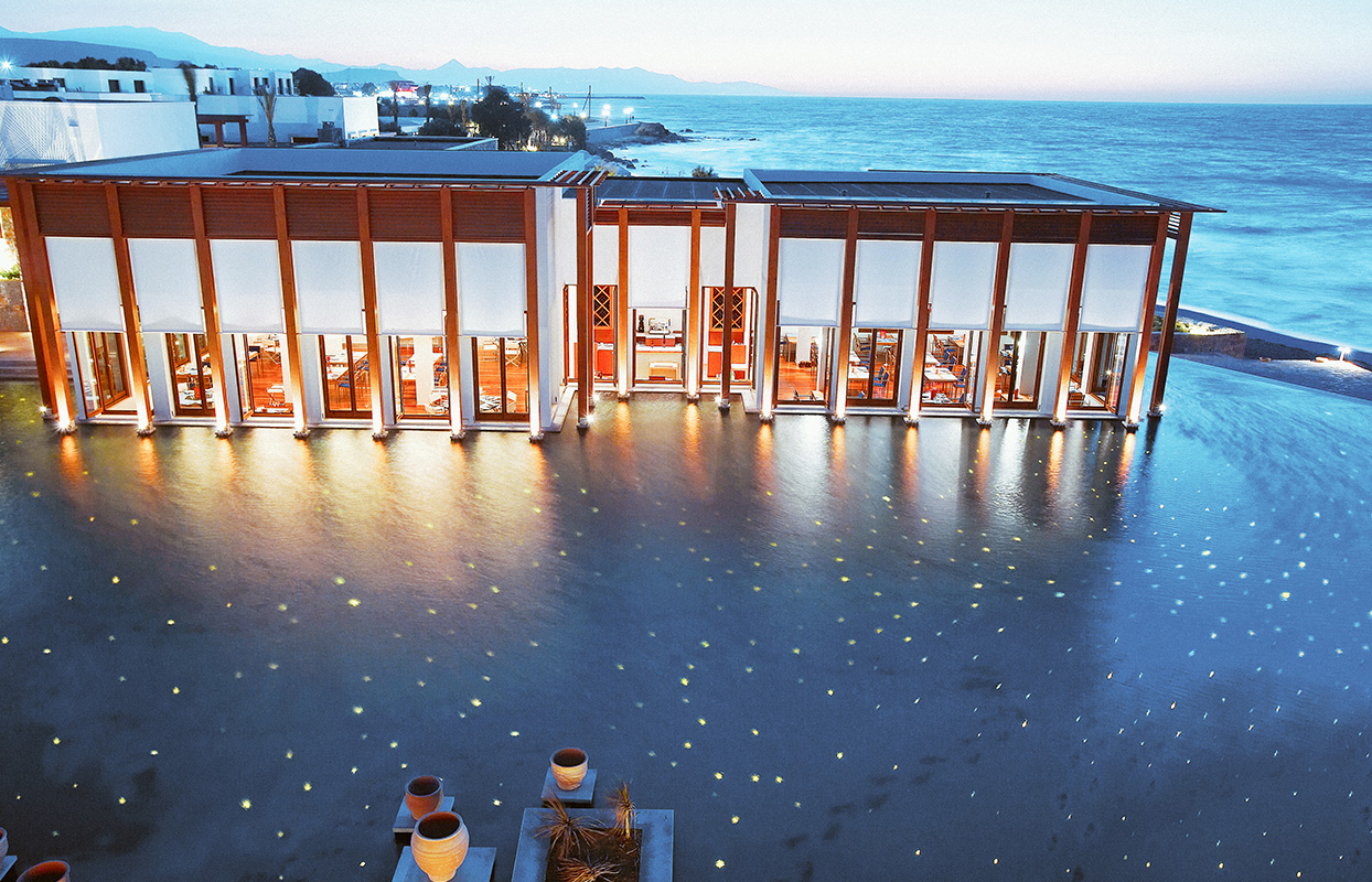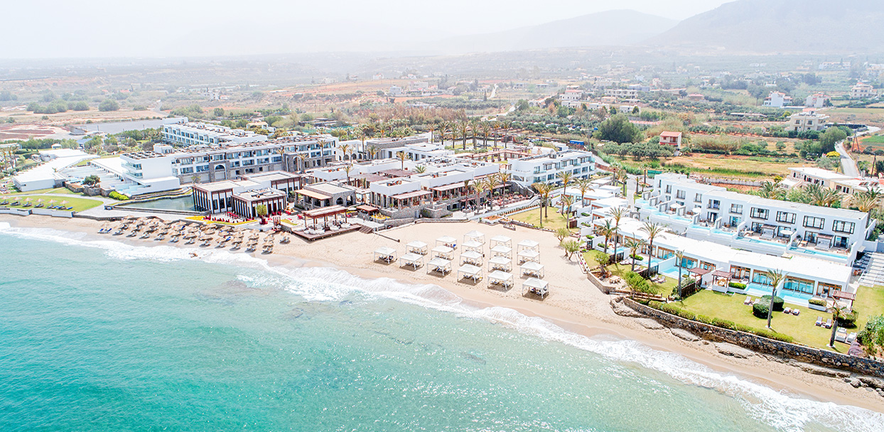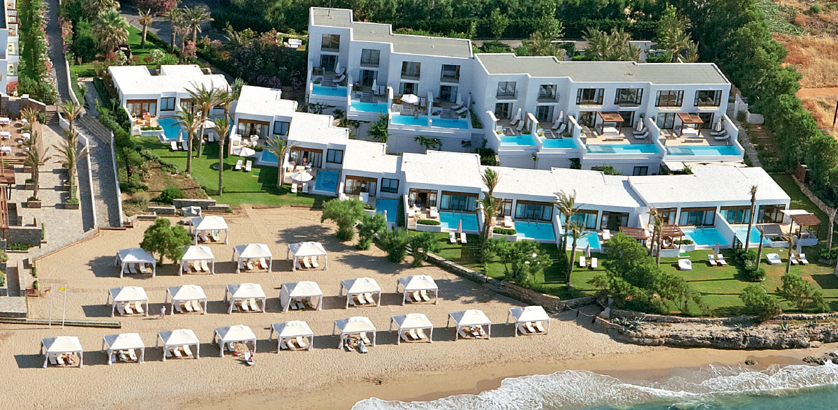 На блакитному узбережжі Егейського моря з його вічнозеленими пальмами і водами численних басейнів, що іскряться під сонячними променями, велично підноситься Amirandes Resort. Розкішний готель, виконаний у стилі мінойського палацу, був удостоєний престижної нагороди Global Hospitality & Design Awards, у категорії «найкращий дизайн номерів серед люксових готелів». Колони, арки, кам'яні тераси та блакитні лагуни в поєднанні з сучасними інтер'єрами та технологіями, роблять Amirandes Resort втіленням справжнього духу острова Крит з його багатовіковою історією та неповторною елегантністю, розкішшю сучасного готелю класу люкс. Відпочиваючим на вибір пропонуються вишукані номери абсолютно на будь-який смак. В основній будівлі готелю знаходяться номери з видом на мальовниче узбережжя, а на території 70 тисяч кв.м. розташувалися побудовані у середземноморському стилі бунгало. Для грецького сімейного відпочинку передбачені оточені садами номери з басейнами. Поціновувачі вишуканого відпочинку в більш приватній обстановці гідно оцінять невеликі крито-венеціанські вілли з терасами і басейнами, що простягаються вздовж узбережжя.