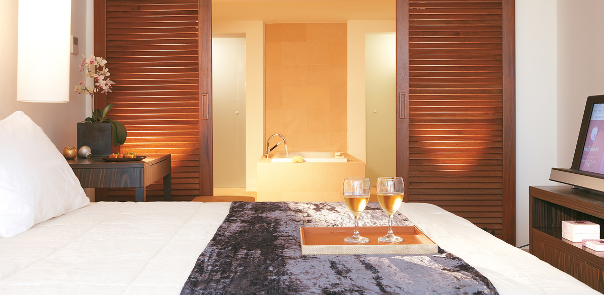 70 кв. м. Розташовується на першій лінії. Крило Lagoon, другий та третій поверх. Планування люксу: спальня з ліжком King size, вітальня відкритого плану, розкішна ванна розташована безпосередньо в спальні, дві раковини з туалетним столиком, окрема душова кабіна, мебльований балкон (5 кв. м). Фронтальний вид на море. До послуг гостей: намет на пляжі для вілл, холодильник для вина. Максимальне розміщення – 2 дорослих та 1 дитина.