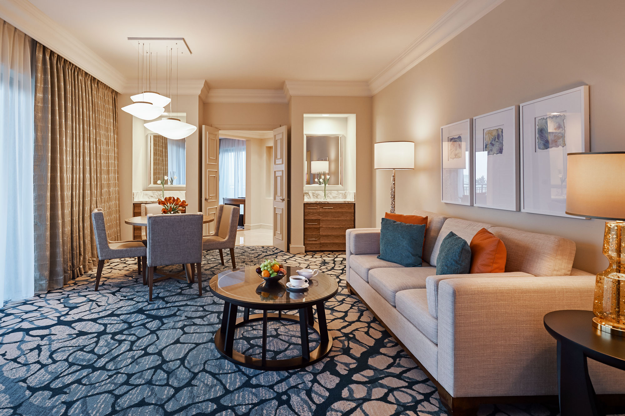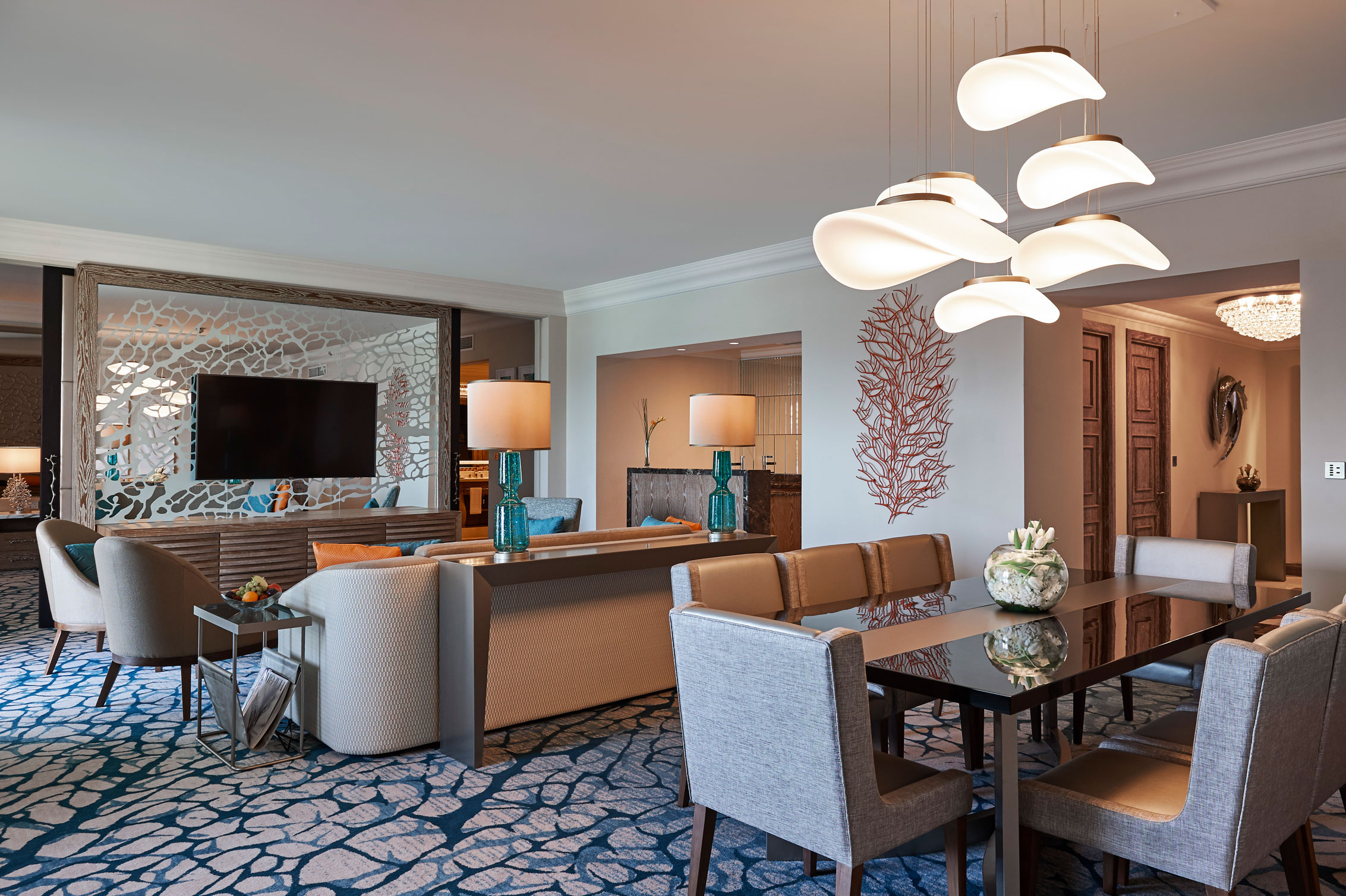 Представницький люкс має площу 101 кв.м. У номері є світла вітальня, простора спальня, зручна гардеробна, вишукана ванна кімната з овальною ванною, гостьова ванна кімната, а також балкон із захоплюючим видом на Перську затоку або Пальму Джумейра.