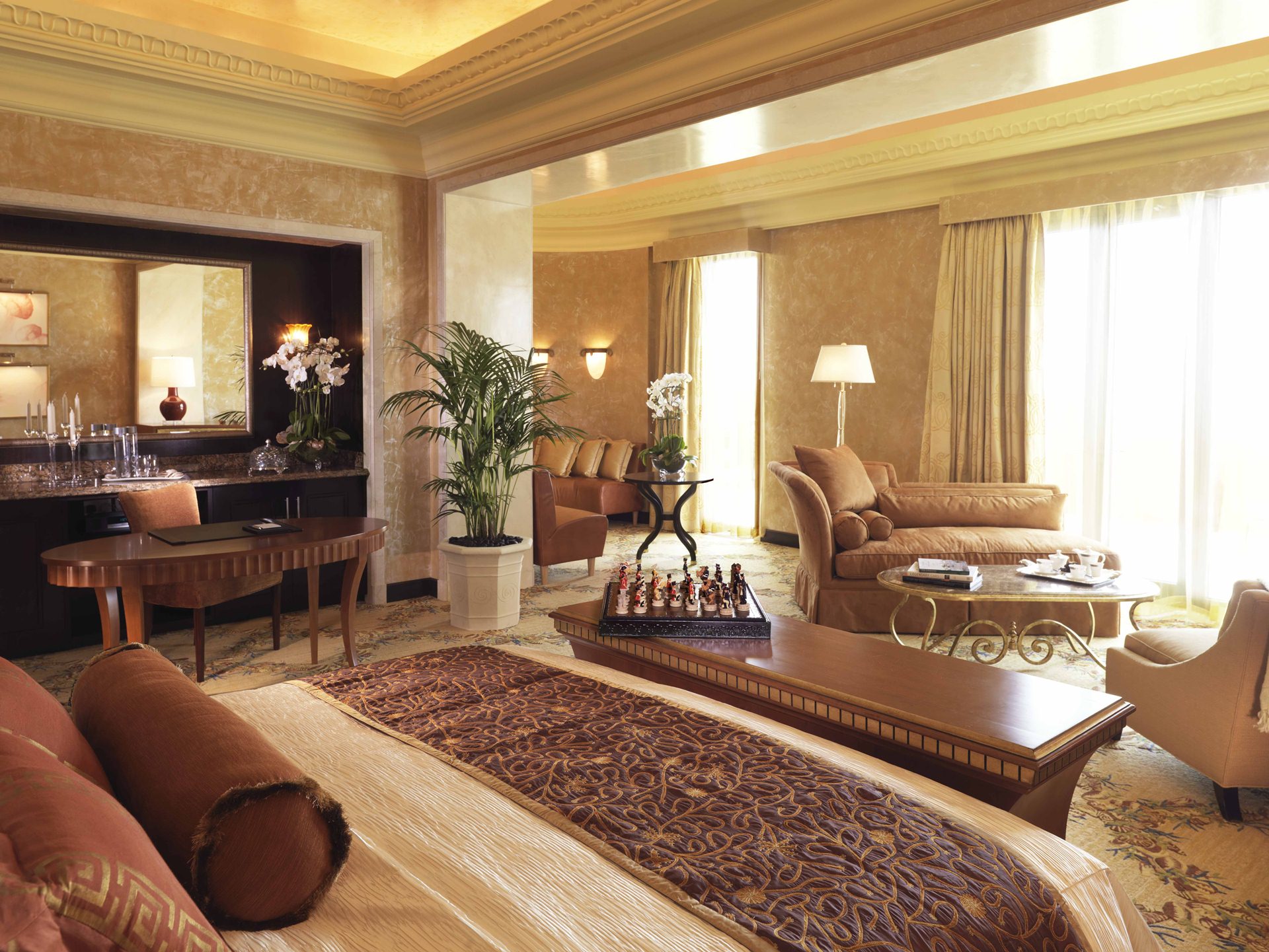 Розкішний люкс 924 кв. У номері є балкон, 2 вітальні, їдальня, кабінет, 3 спальні, 5 ванних кімнат. Персональний ліфт із холу Західного корпусу. Послуги персонального камердинера (цілодобово). Номер розташований над аркою, що з'єднує Східний та Західний корпуси. Вид на Перську затоку і Пальму Джумейра.