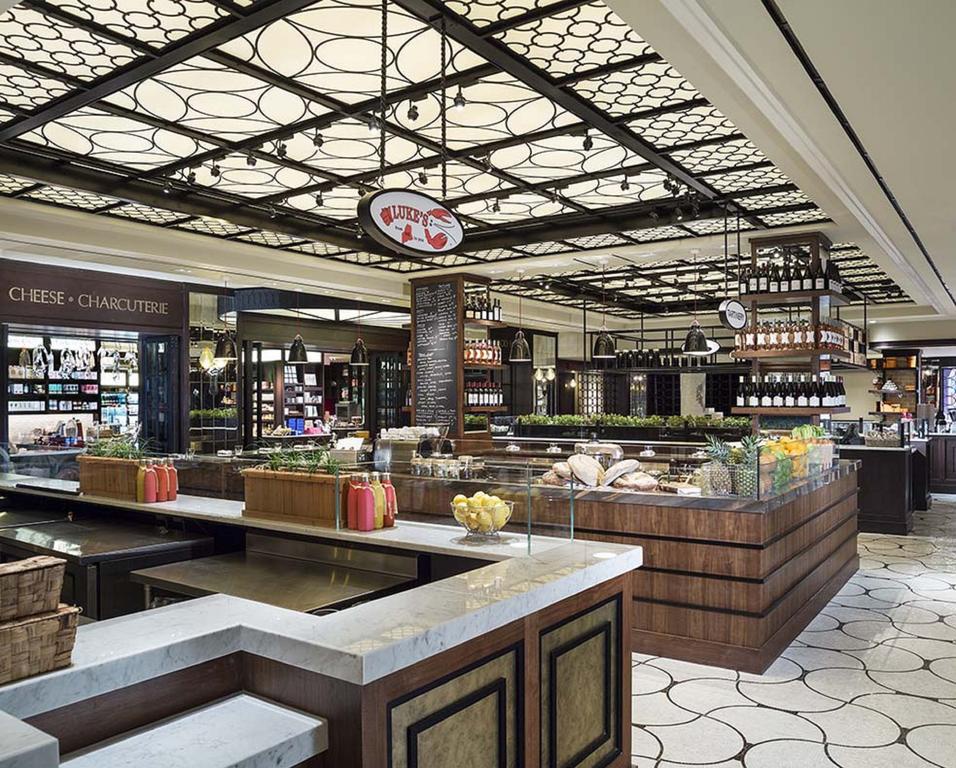 The Todd Англійська Food Hall - Кафе в європейському стилі пропонує своїм відвідувачам страви з середземноморської кухні та інтернаціональної кухні. Стильний і неординарний дизайн інтер'єру використовує мозаїчний мармур, кераміка і дерев'яні панелі.