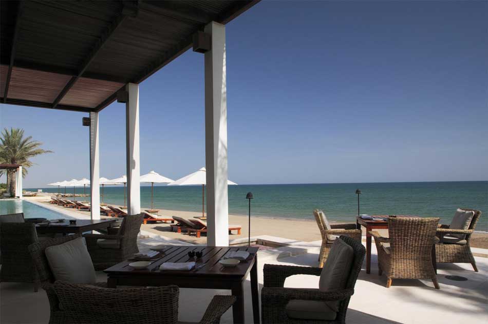 На пляжному ресторані з чудовим видом на затоку Оману готують морепродукти і рибу.