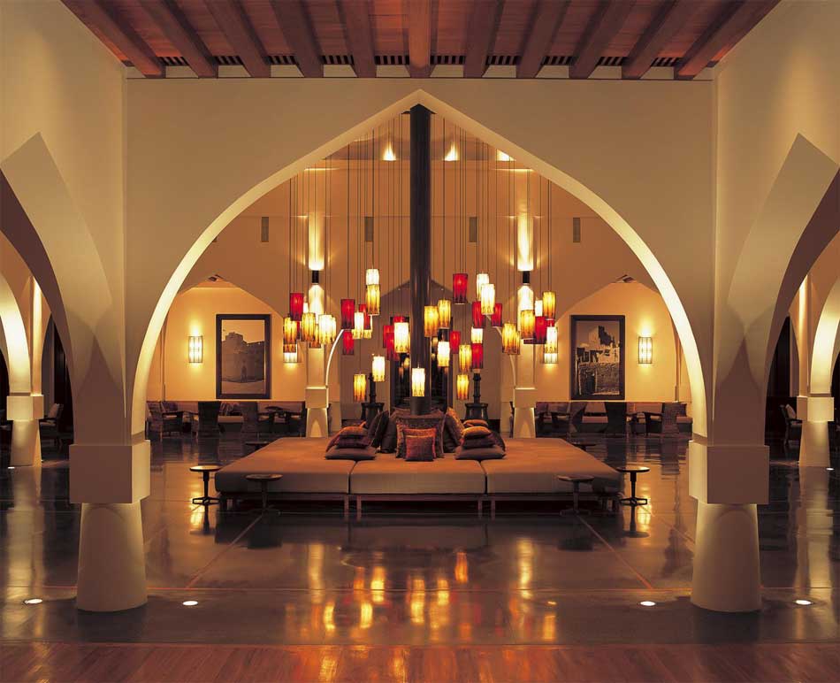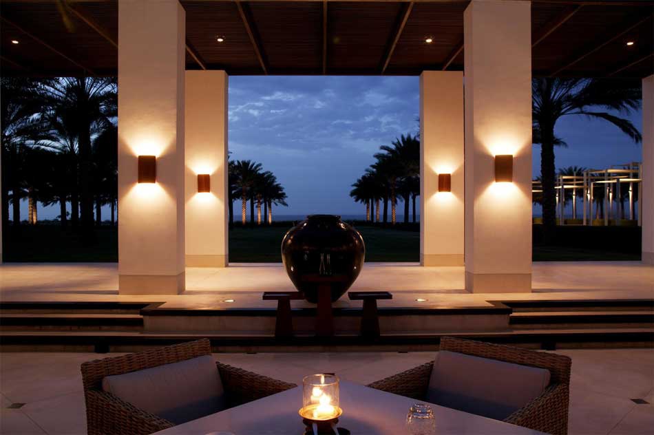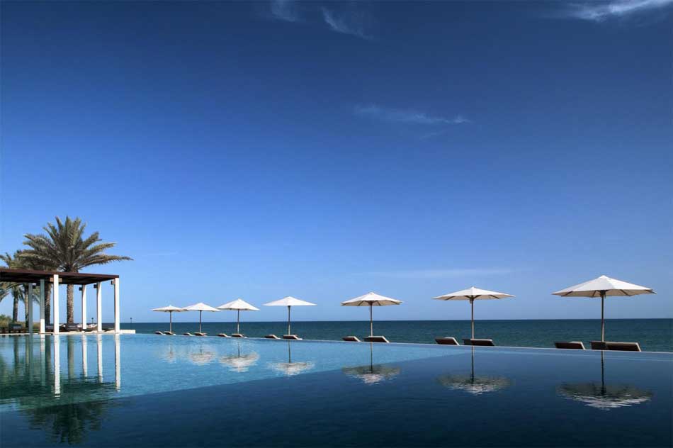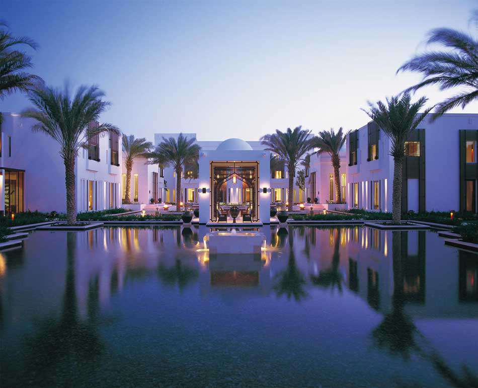 На тлі величних гір Хаджа, піщаного пляжу і вод затоки Оману мають чеді Мускат Оману. Білі будинки, побудовані в традиціях арабської архітектури, об'єднані садом і блискучими дзеркальними ставками, а внутрішня демонтаж готелю являє собою гармонійне середовище вишуканого мінімалістського дизайну і східної розкіш. Кількість і шви обладнані останнім словом обладнання і неточні. У готелі є два відкриті басейни, обладнані SPA-центром і тенісним комплексом. П'яти ресторанів пропонують широкий вибір страв східної та міжнародної кухні, а бар пропонує вишукані напої.